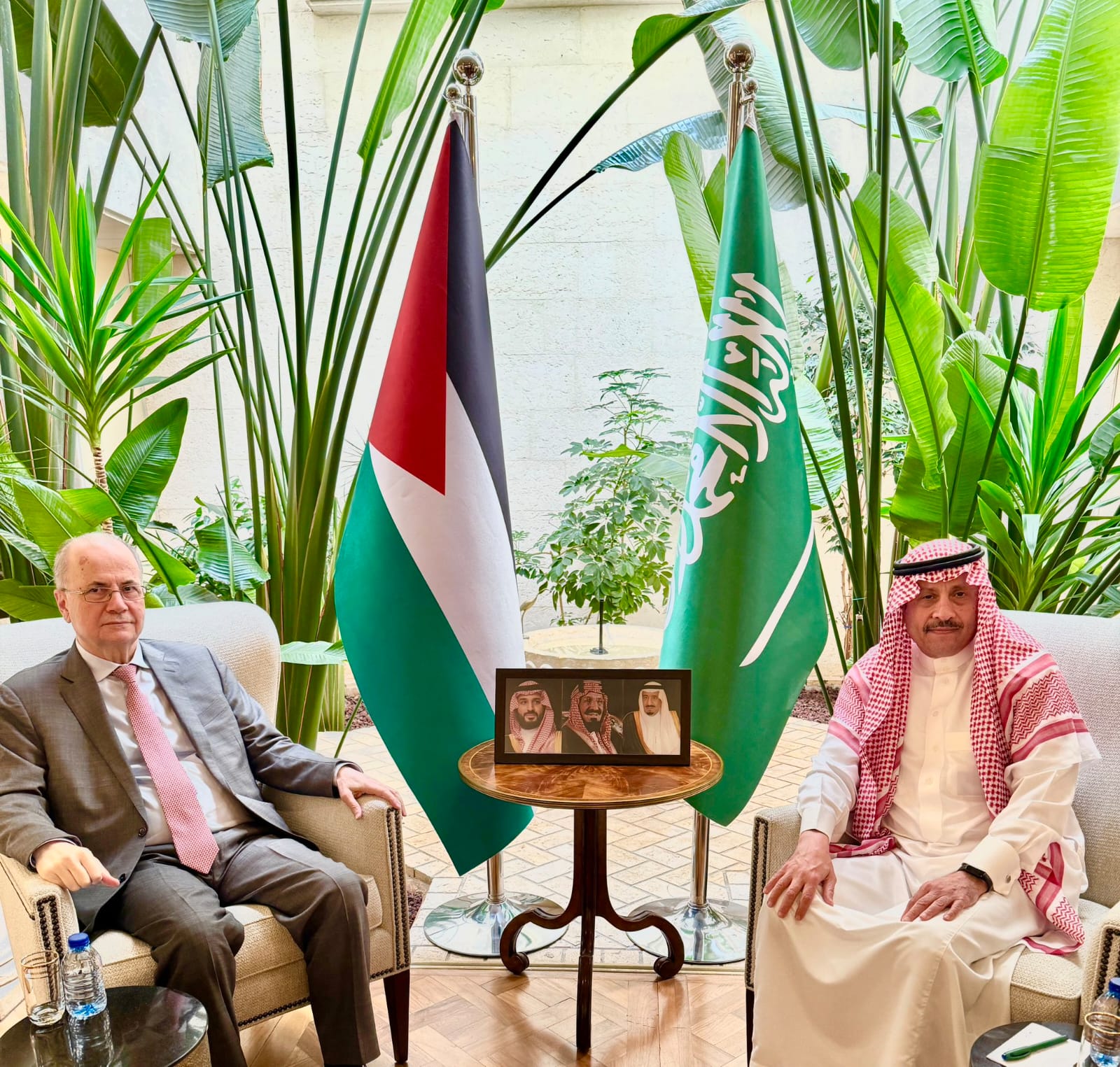لتقى سعادة سفير خادم الحرمين الشريفين لدى الأردن، نايف بن بندر السديري، اليوم، دولة رئيس وزراء فلسطين ووزير الخارجية الدكتور محمد مصطفى.