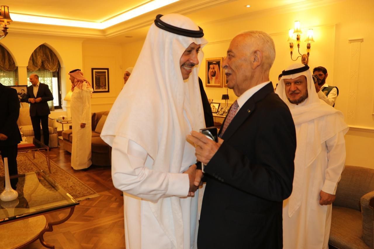 أقام سفير خادم الحرمين الشريفين لدى الأردن نايف بن بندر السديري مأدبة غداء اليوم تكريمًا لمعالي الدكتور عبد الله بن عبد العزيز الربيعة المستشار في الديوان الملكي والمشرف العام على مركز الملك سلمان للإغاثة والاعمال الإنسانية والوفد المرافق لمعالي الدكتور والذي يزور الأردن حالياً لتوقيع عدد من اتفاقيات المشاريع الإنسانية التي تنفذها المملكة العربية السعودية في مجالات الصحة والتنمية البشرية والإغاثة والغذاء للمرضى الفلسطينيين وللاجئين السوريين والفئات الأقل حظاً في الأردن.