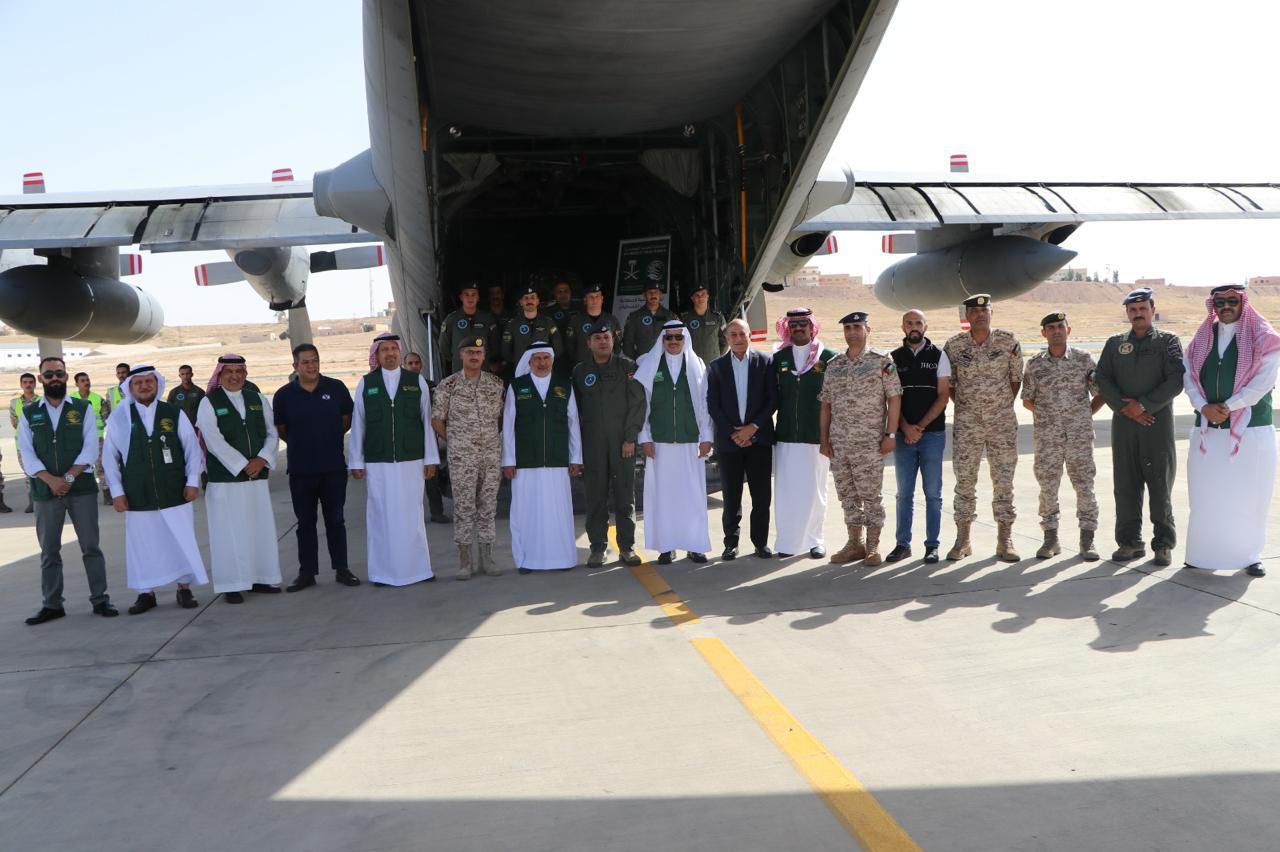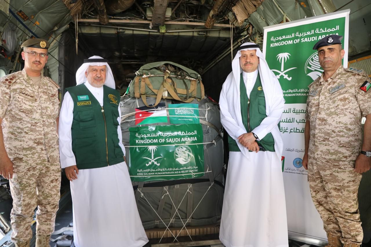 جرت مساء اليوم مراسم تدشين وتسليم المساهمة السعودية لمساندة الجهود الدولية في تقديم المساعدات الإغاثية عبر عمليات الإنزال الجوي في قطاع غزة (المرحلة الثانية) بين مركز الملك سلمان للإغاثة والأعمال الإنسانية والهيئة الخيرية الأردنية الهاشمية والقوات المسلحة الأردنية (الجيش العربي)، في قاعدة الملك عبد الله الجوية بمنطقة الغباوي شرق العاصمة الأردنية حيث تم تدشين وتسليم المساعدات الإغاثية بحضور المشرف العام على مركز الملك سلمان للإغاثة والأعمال الإنسانية الدكتور / عبدالله بن عبدالعزيز الربيعة، وبحضور سفير خادم الحرمين الشريفين / نايف بن بندر السديري و الأمين العام للهيئة الخيرية الهاشمية الدكتور حسين الشبلي والعميد الركن مدير مديرية الحدود احمد هاشم خليفات.