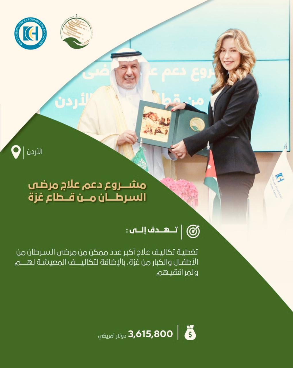 وتم ذلك من خلال "مركز الملك سلمان للإغاثة والأعمال الإنسانية" وقعت هاذه الاتفاقية مع "مركز الحسين للسرطان" في العاصمة الأردنية