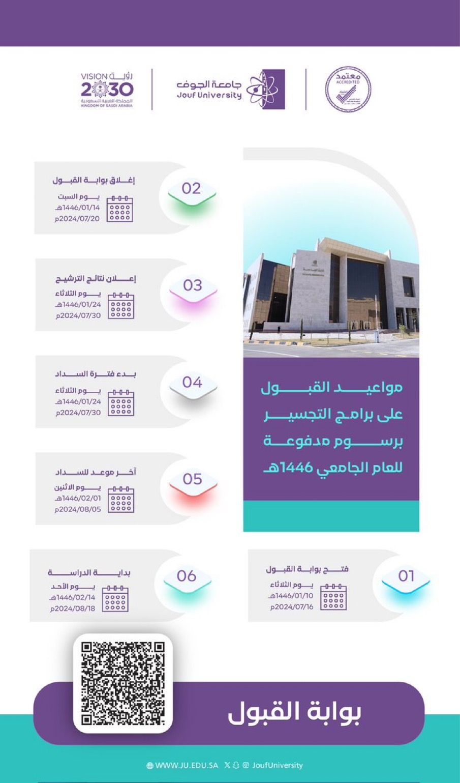 عمادة القبول والتسجيل في جامعة الجوف تعلن مواعيد القبول ببرامج التجسير