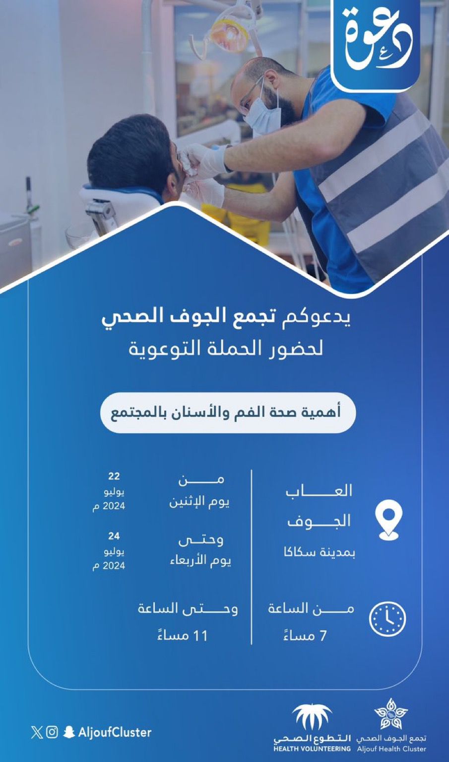 يقيم تجمع الجوف الصحي حملة توعوية بأهمية صحة الفم والاسنان بالمجتمع