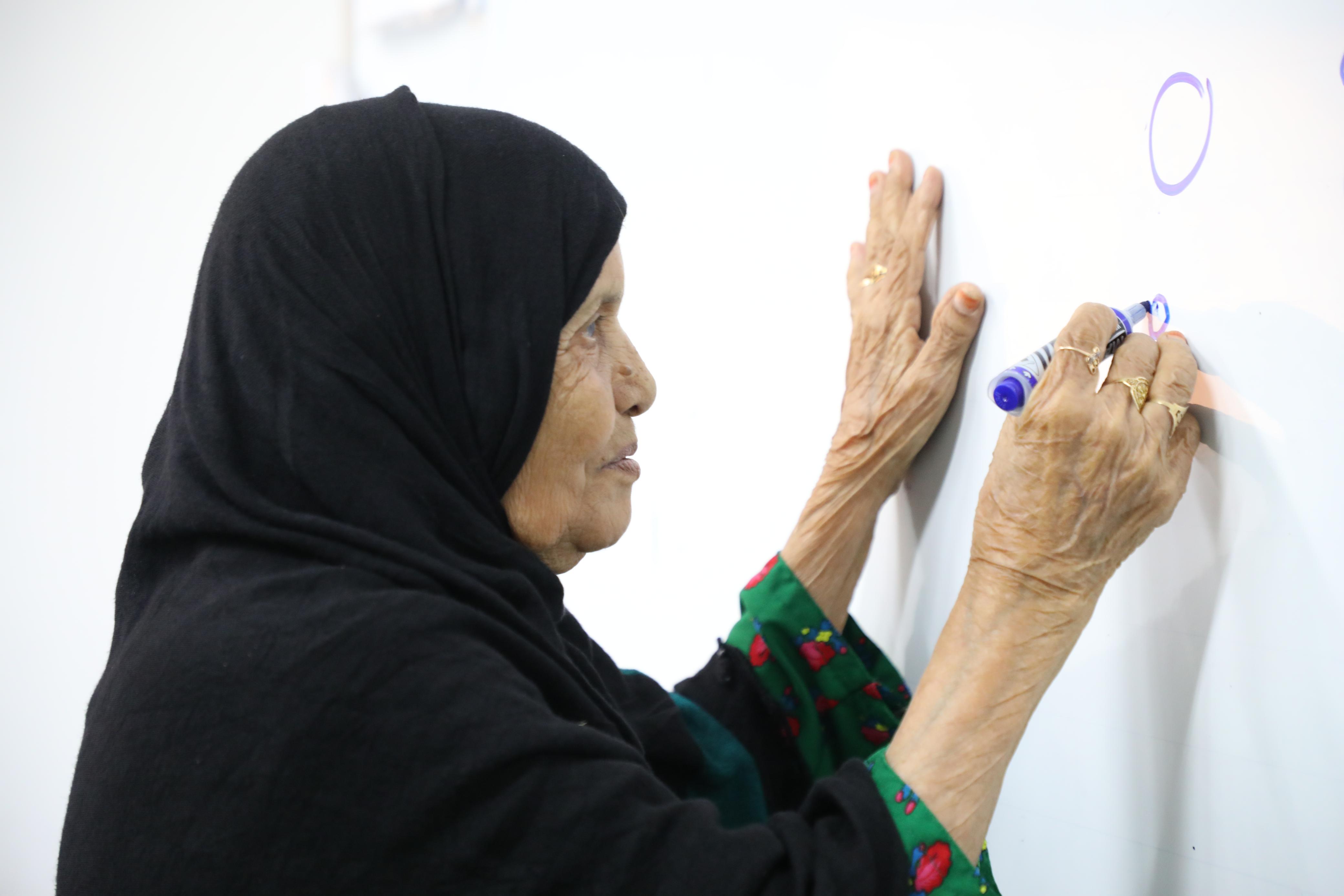 وانتظمت الدارسة شقراء طوهري التي تجاوز عمرها الـ105 أعوام ؛ في الحملة عبر مركز الظبرة التعليمي بمحافظة أحد المسارحة، عبر إرادتها القوية لتستمر على مقاعد الدراسة لمحو أميتها، والحصول على فرصة القراءة والكتابة معبرة عن سعادتها وهي تقف حينًا أمام السبورة وتكتب حروف الهجاء أو تجلس على مقعدها الدراسي وتكتب وتقرأ الأرقام، وتقرأ سورة الفاتحة وتقرأ قصار السور من المصحف الشريف.