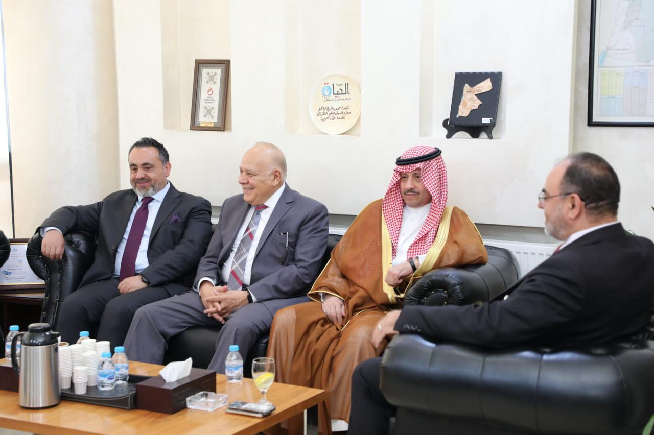 حضر سعادة السفير نايف بن بندر السديري الجلسة الافتتاحية لمؤتمر العلمي الدولي السابع لكلية الأعمال بالتشارك مع عمادة البحث العلمي والدراسات العليا بعنوان ( رقمنة الأعمال والبحث العلمي : رؤى مستقبلية ) الذي اقيم بجامعة عمان العربية تحت رعاية الدكتور عمر الجازي رئيس مجلس أمناء الجامعة وبدعوة من رئيس الجامعة الدكتور محمد الوديان .