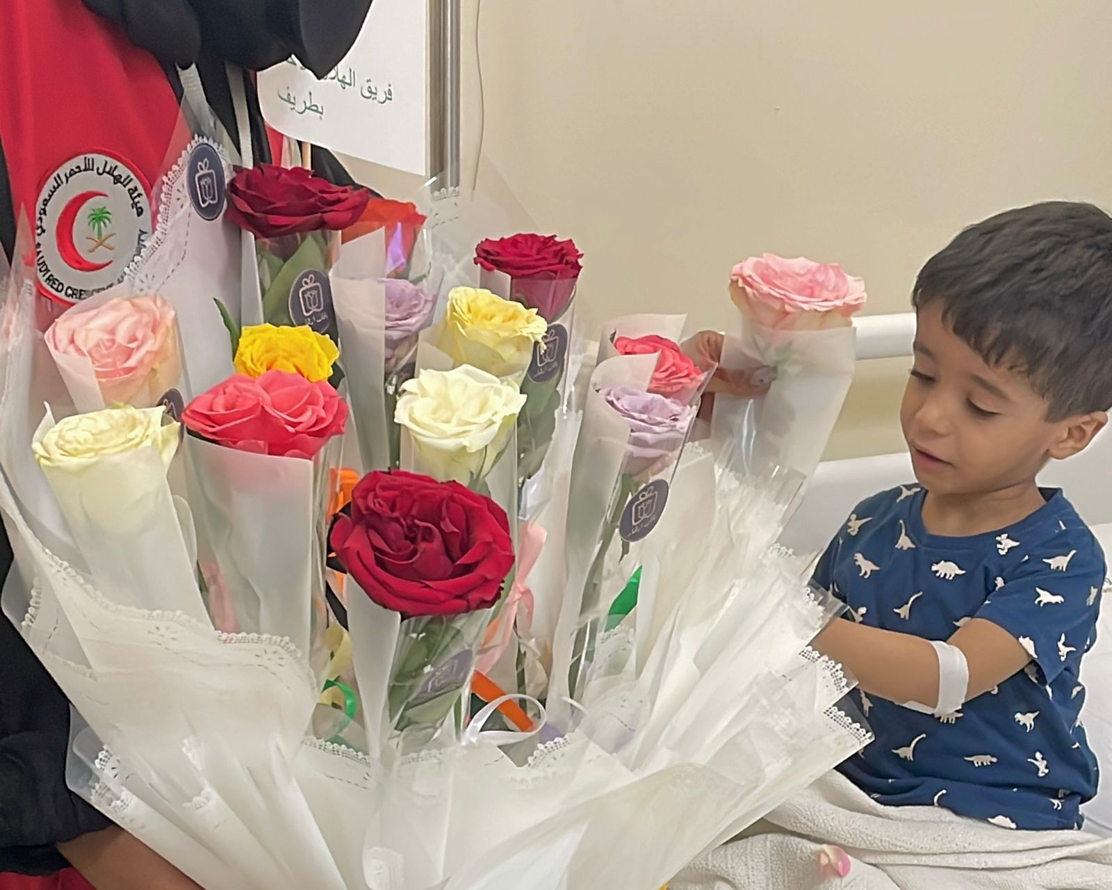 نفذ فرع هيئة الهلال الأحمر السعودي بمنطقة الحدود الشمالية اليوم زيارة الى المنومين من الأطفال بمستشفى محافظة طريف حيث قام الفريق التطوعي بالمحافظة بالمبادرة وبتوزيع الورود والهدايا على الأطفال شكراً سفراء العطاء في محافظة طريف .