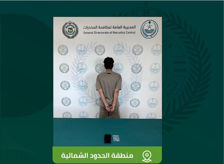 قبضت المديرية العامة لمكافحة المخدرات على مواطن بمنطقة الحدود الشمالية لترويجه مادة الحشيش المخدر، وجرى إيقافه واتخاذ الإجراءات النظامية بحقه، وإحالته إلى النيابة العامة.