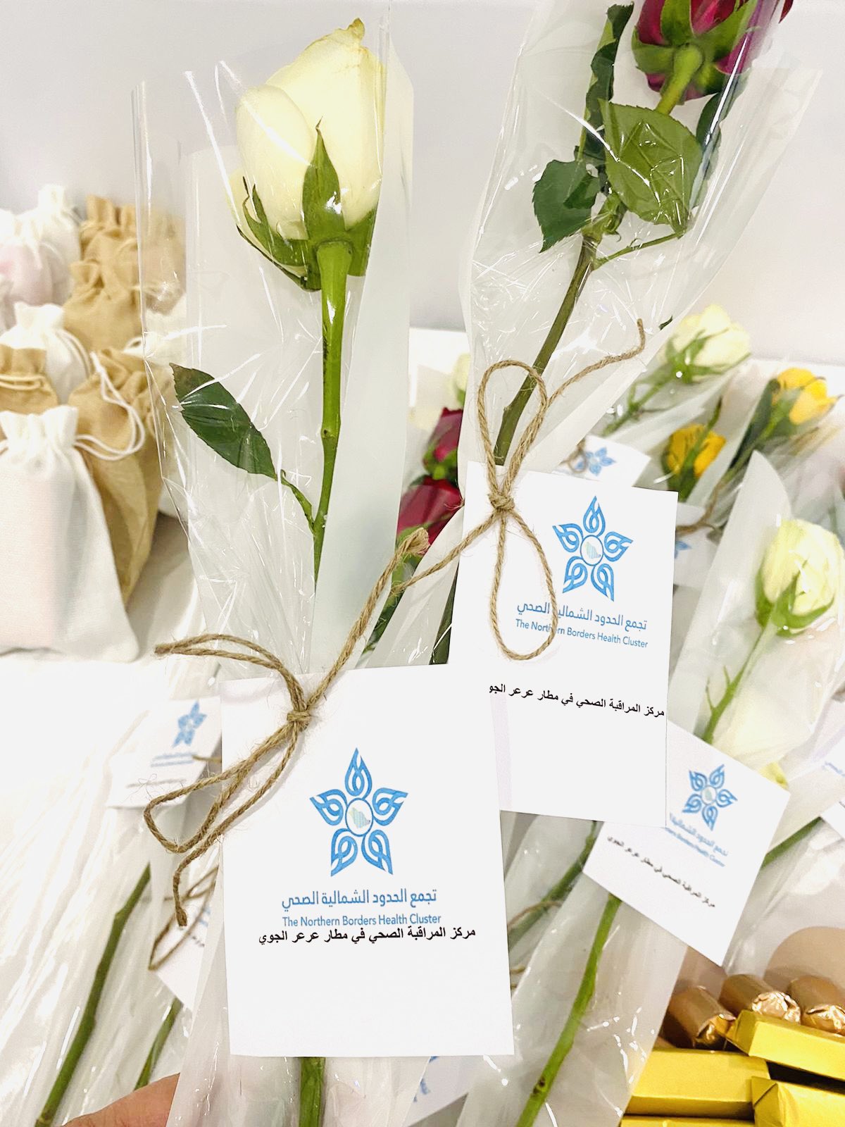 احتفالاً بتدشين أولى الرحلات الدولية من مطار القاهرة الدولي إلى مطار عرعر، استقبل مركز المراقبة الصحي في مطار عرعر الدولي المسافرين بالورود والهدايا الترحيبية .