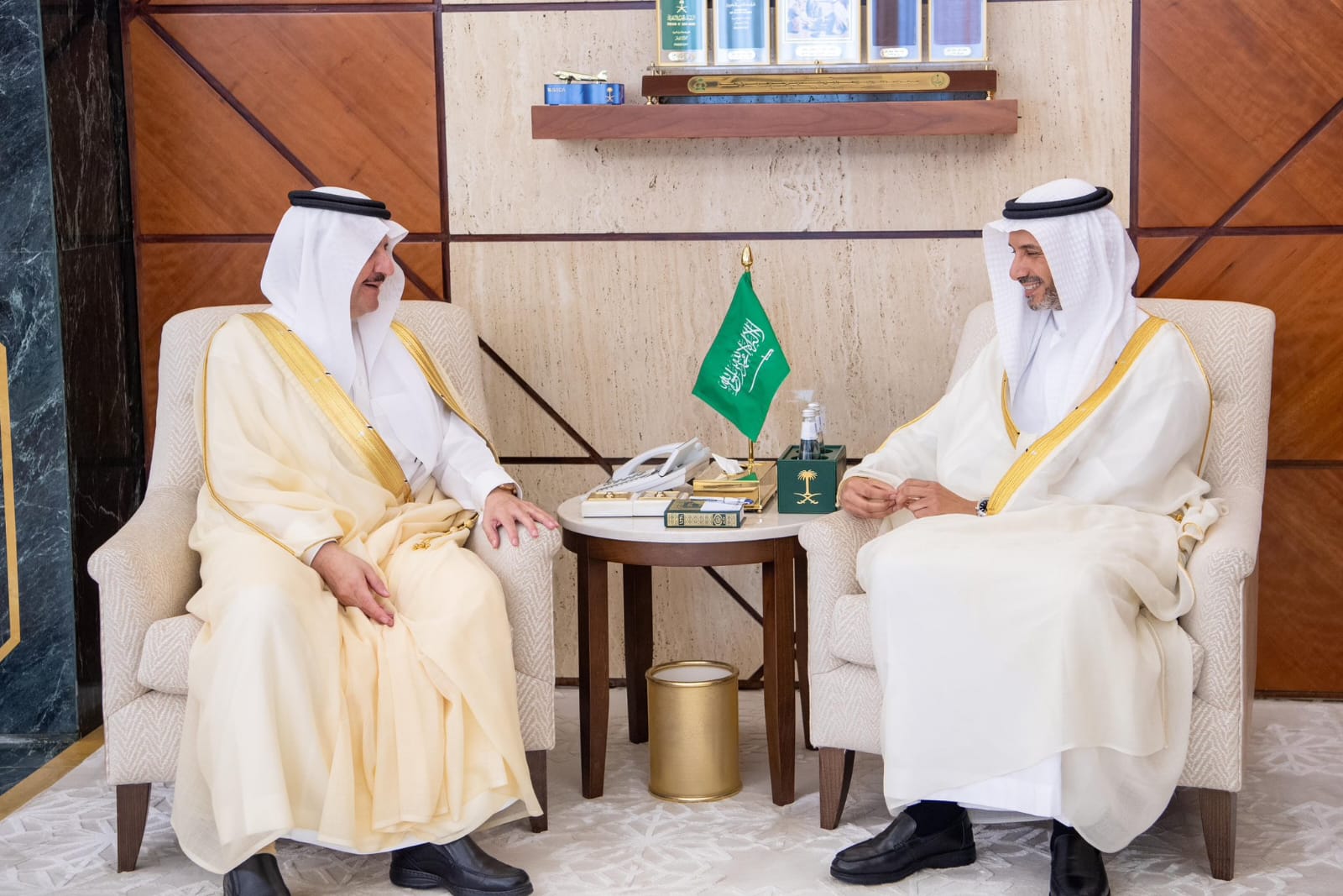 استقبل صاحب السمو الملكي الأمير سعود بن نايف بن عبدالعزيز أمير المنطقة الشرقية في مكتب سموه بديوان الإمارة اليوم الأحدرئيس جامعة الإمام عبدالرحمن بن فيصل المكلف سعادة الاستاذالدكتور فهد بن أحمد الحربي بمناسبة تكليفه وهنأ سمو أمير المنطقة الشرقية الحربي بهذه المناسبة متمنياً له التوفيق والنجاح في مهام عمله ورفع الحربي الشكر لسموأمير المنطقةالشرقية على اهتمامه وتوجيهاته السديدة لخدمة التعليم الجامعي في المنطقةوتحقيق تطلعات القيادة.
