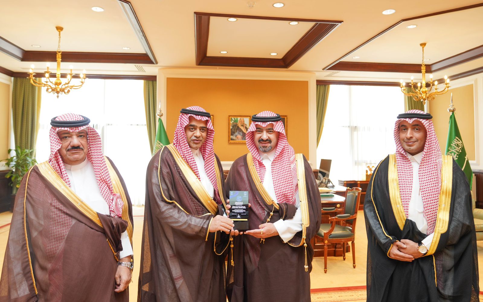 استقبل صاحب السمو الملكي الأمير خالد بن سعود بن عبدالله الفيصل بن عبدالعزيز، نائب أمير منطقة تبوك ، بمكتبه بالإمارة اليوم ، الرئيس التنفيذي لشركة تجمع مطارات الثاني المهندس علي بن محمد مسرحي يرافقه مدير عام مطار الأمير سلطان بن عبدالعزيز الدولي بتبوك مازن بن أحمد عسيري وعدداً من قيادات الشركة. وتسلَّم سموه خلال اللقاء التقرير السنوي لمطار الأمير سلطان بن عبدالعزيز الدولي للعام الماضي 2023م، والذي تضمن الحركة الجوية حيث بلغت نسبة نمو اعداد المسافرين بزيادة تبلغ 27% ، ونمو عدد الرحلات بنسبة نمو 14 % مقارنة بالعام الماضي،بالإضافة لزيادة الوجهات والناقلات الجديدة والتي بلغ معدل نموها في عام 2023 ما نسبته 13 % مقارنةً بعام 2022م ،وكما شهد المطار ارتفاعاً في حركة الشحن وزيادةً في عدد الوجهات الدولية والخدمات والأنشطة التجارية .