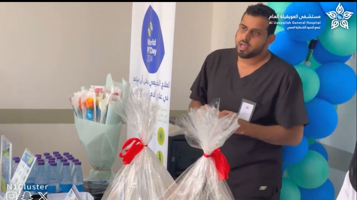 اقام مستشفى العويقيلة العام عضو تجمع الحدود الشمالية الصحي يطلق فعاليات اليوم العالمي للعلاج الطبيعي 2024م تحت عنوان " الآم اسفل الظهر " يهدف إلى نشر الوعي المعرفي على أهمية العلاج الطبيعي مع التركيز على الدور الفعال للعلاج الطبيعي، وتأثيره الإيجابي في علاج المرضى المصابين بأمراض مختلفة .