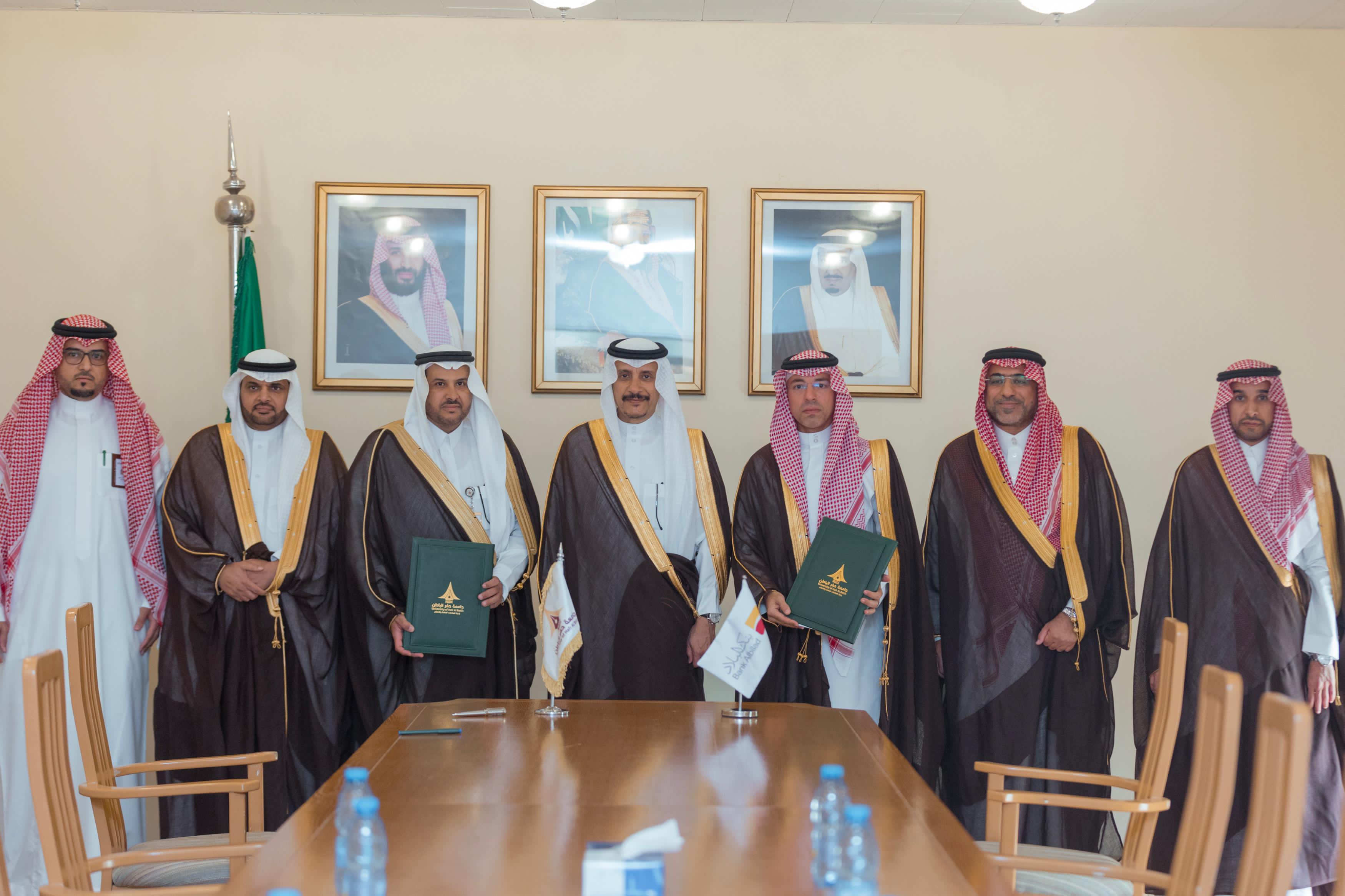 شهد صاحب السمو الأمير عبد الرحمن بن عبد الله بن فيصل محافظ حفر الباطن، في مقر المحافظة اليوم توقيع مذكرة تفاهم بين جامعة حفر الباطن وبنك البلاد بحضور سعادة رئيس الجامعة الأستاذ الدكتور خالد بن باني الحربي، ووكيل الجامعة الأستاذ الدكتور فرحان بن خشم السويلمي، ونائب الرئيس التنفيذي لبنك البلاد الأستاذ بشار بن يحيى القنيبط.