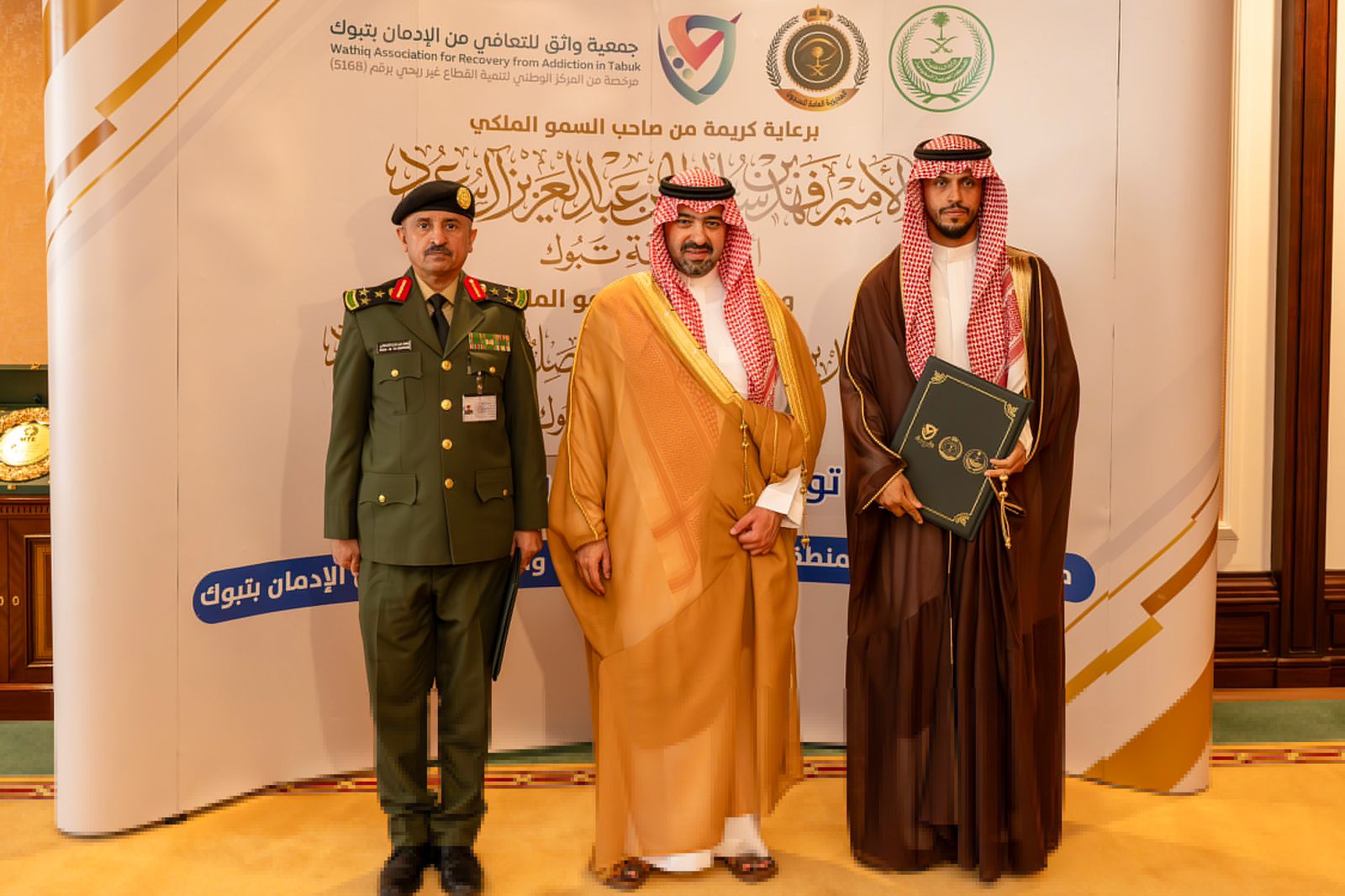 تحت رعاية صاحب السمو الملكي الأمير فهد بن سلطان بن عبدالعزيز أمير منطقة تبوك ، شهد صاحب السمو الملكي الأمير خالد بن سعود بن عبدالله الفيصل بن عبدالعزيز نائب أمير منطقة تبوك، بالإمارة اليوم, توقيع اتفاقية تعاون بين مديرية سجون المنطقة وجمعية واثق للتعافي من الإدمان بتبوك بحضور مدير سجون منطقة تبوك العميد سعد بن وازع القحطاني ورئيس مجلس إدارة جمعية واثق للتعافي من الإدمان بتبوك بدر بن محمد العطوي.
