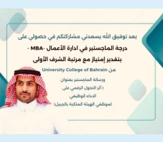 " الرشيدي" يحصل على درجة الماجستير من كلية البحرين الجامعية
