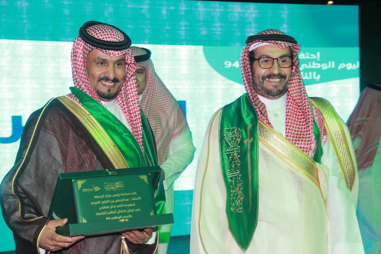 شارك سعادة محافظ القريات عبدالله بن صالح الجاسر حفل اليوم اليوم الوطني ٩٤ والذي تنظمه بلدية الناصفة تحت شعار “نحلم ونحقق “.