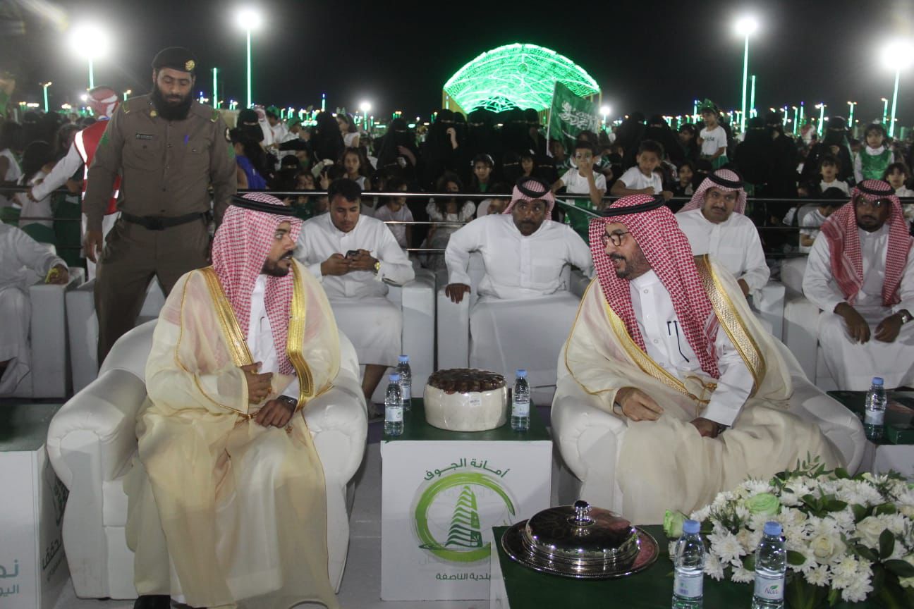 وكان في استقباله رئيس بلدية الناصفة المهندس جمال البلوي ورئيس مركز الناصفة مقرن الدوسري ورئيس مركز الرديفة وجماجم عبدالرحمن الحربي ومديري ورؤساء الدوائر الحكومية بالناصفة وقام سعادته بجولة على الفعاليات حيث بدأ الحفل الخطابي بالسلام الملكي ثم كلمة الأهالي بهذه المناسبة الغالية على قلوب الجميع ثم قصائد وطنية، وكذلك عدة فقرات احتفالية، وفي للختام شارك سعادة المحافظ مديري الجهات الحكومية والأهالي بالناصفة بالعرضة السعودية.