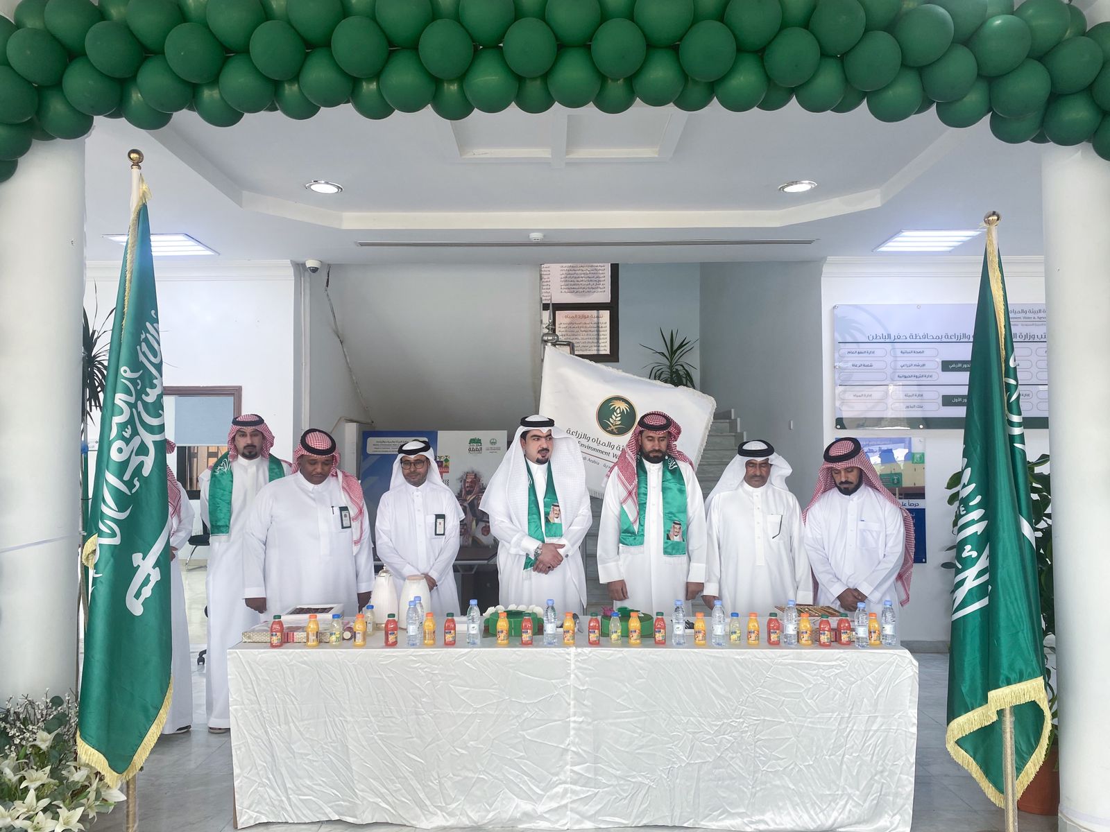 احتفل مكتب وزارة البيئة والمياه والزراعة بمحافظة حفرالباطن ابتهاجاً بمناسبة اليوم الوطني94 وذلك بحضور سعادة مدير عام المكتب الاستاذ / زبن بن مزهر الشمري ومدراء الإدارات و الأقسام وعدد من الموظفين وشهد الحفل العديد من الفقرات حيث أفتتح الحفل بأداء السلام الملكي ثم آيات من الذكر الحكيم وتبعها كلمة الاستاذ الشمري تحدث فيها عن فضل الله علينا بأن حبانا وطن ينعم بأمن وأمان وقادة عظام مقدماً التهنئة للقيادة الرشيدة على استمرار المسيرة المليئة بالعطاء مجدداً لهم الولاء والطاعه وسائلاً من الله أن يحفظ هذه البلاد وأن يعيد علينا هذه المناسبه كل عام والجميع بأتم صحة وعافيه وأمن واستقرار.