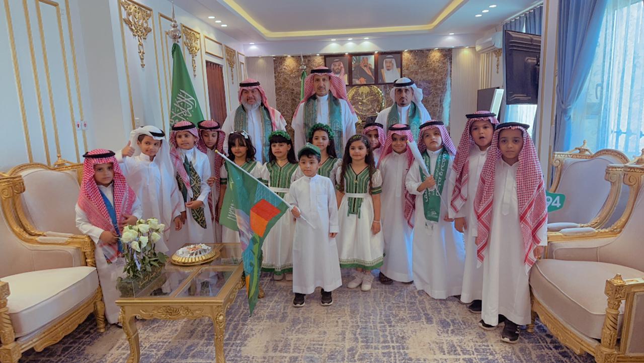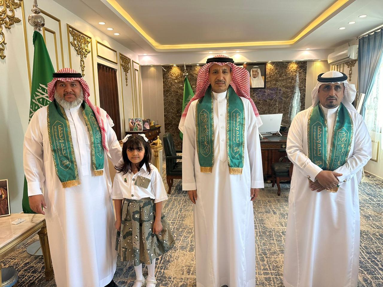 استقبل محافظ رفحاء المكلف /عواد عبدالله الشمري في مكتبه اليوم مدير مكتب التعليم برفحاء منيف خضير الضوي ومشرف النشاط بالمكتب/نهاب قاسم والمشرف التربوي/عيادة الجنيدي والمنسق الإعلامي بالمكتب/فليح الصخيل وبرفقتهم طلاب وطالبات من المدارس (مدارس الفا الأهلية والابتدائية العاشرة والابتدائية الثانية )وذلك احتفاءاً بمناسبة اليوم الوطني الـ 94.