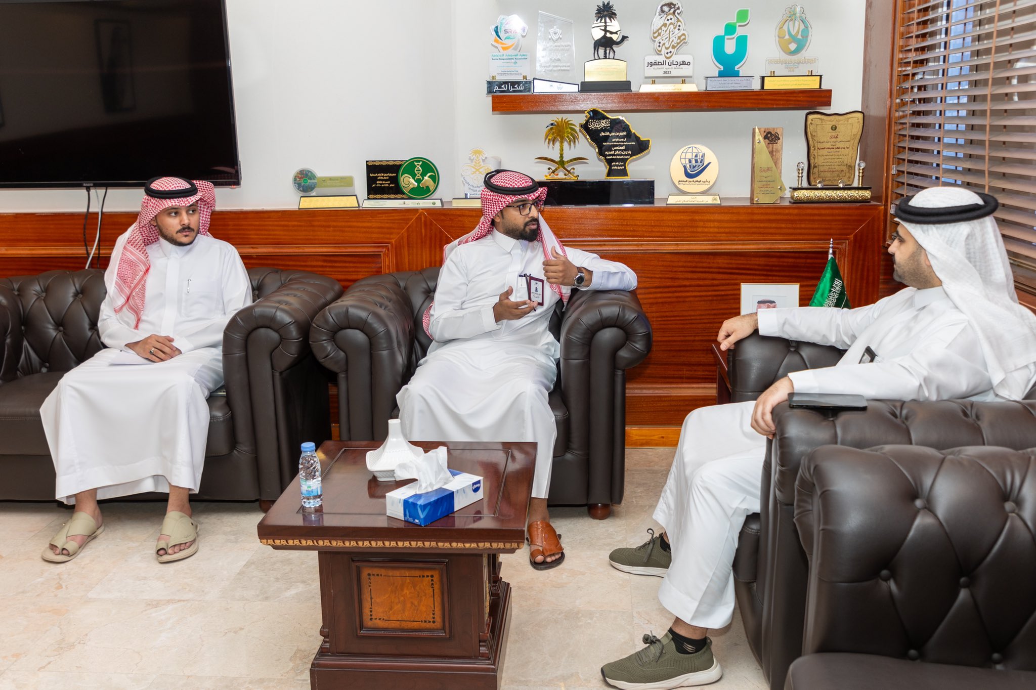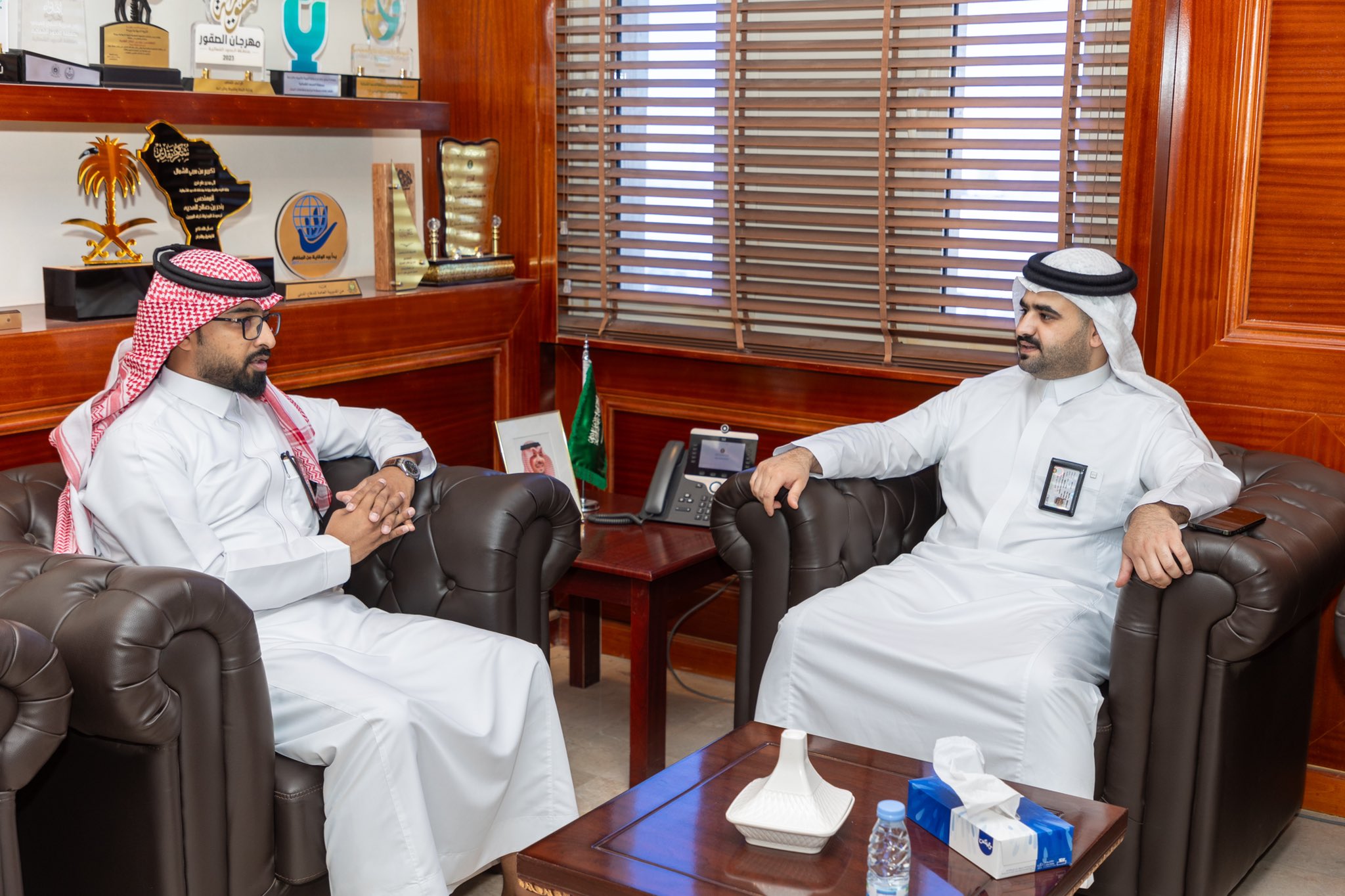 نائب رئيس لجنة استقبال طلبات الأراضي البعلية بفرع وزارة البيئة بمنطقة الحدود الشمالية نواف خالد العنزي يستقبل مدير العلاقات العامة بالغرفة التجارية بالمنطقة شامان سالم الرويلي .