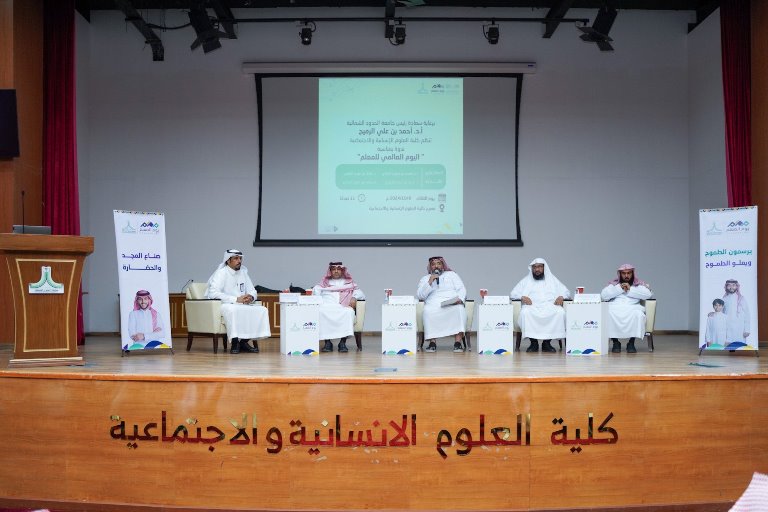 برعاية سعادة رئيس جامعة الحدود الشمالية نظمت كلية العلوم الإنسانية والاجتماعية ندوة بمناسبة اليوم العالمي للمعلم ، شارك فيها عدد من أعضاء هيئة التدريس المتخصصين تحدثوا فيها عن دور المعلم في العملية التعليمية والطموحات والآفاق المرجوة، ومكانته في التطوير وتحقيق المستهدفات.
