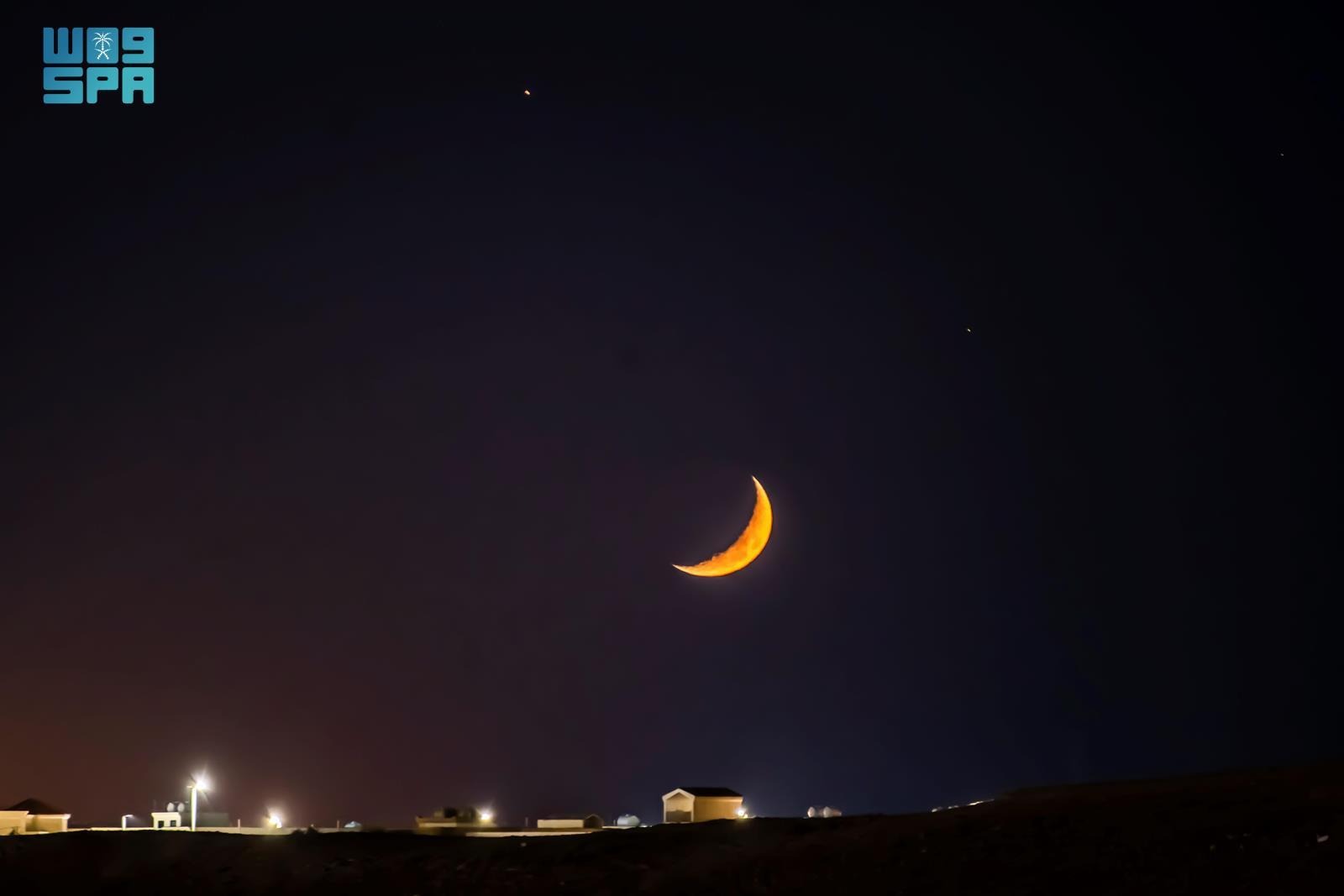رُصد أمس, القمر مقترنًا بنجم "قلب العقرب" ونجم النياط في سماء مدينة عرعر بمنطقة الحدود الشمالية في مشهد بديع.