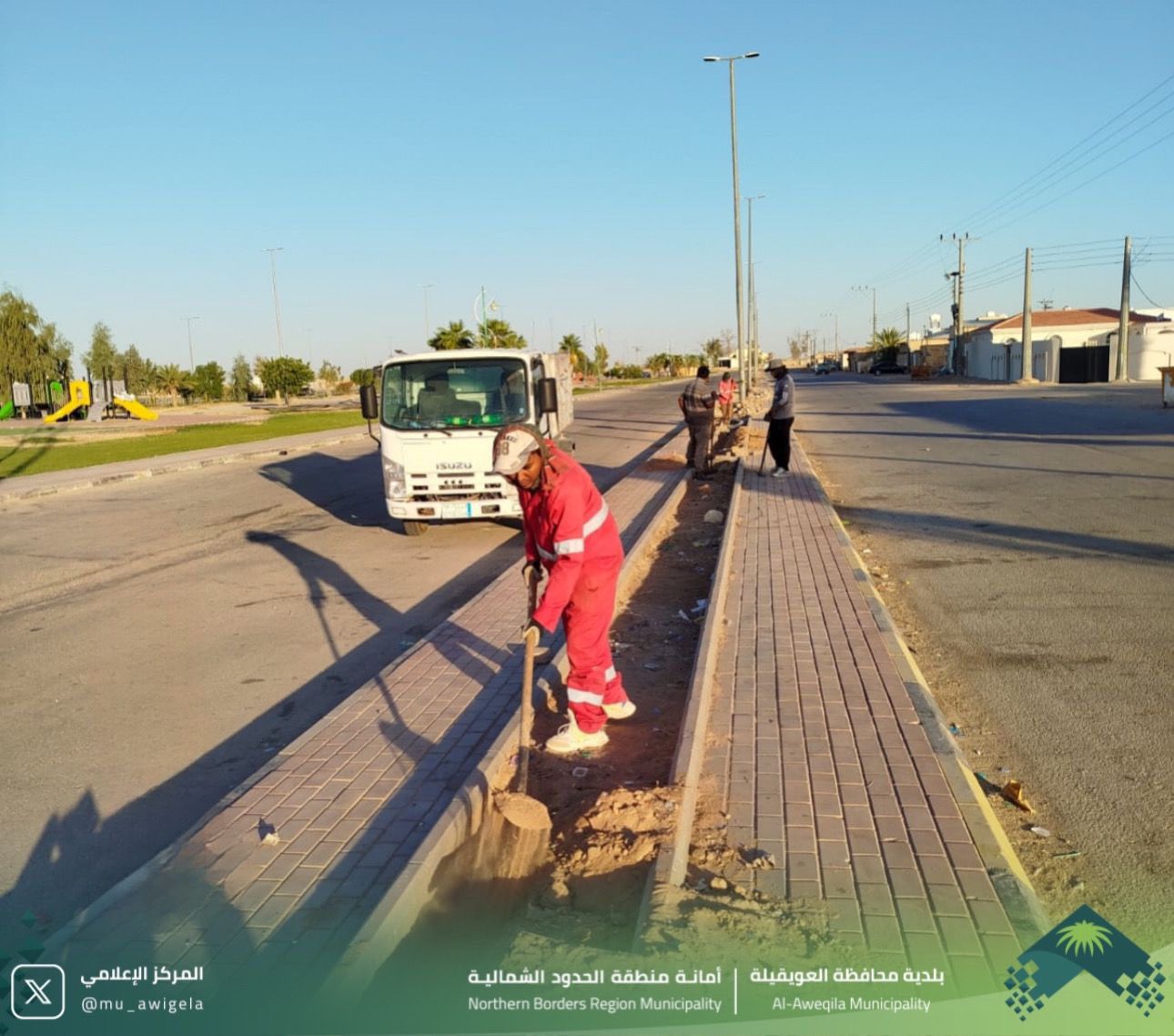 واصلت بلدية محافظة العويقيلة جهودها في تمديد شبكات الري لسقيا المزروعات بقرية المركوز .