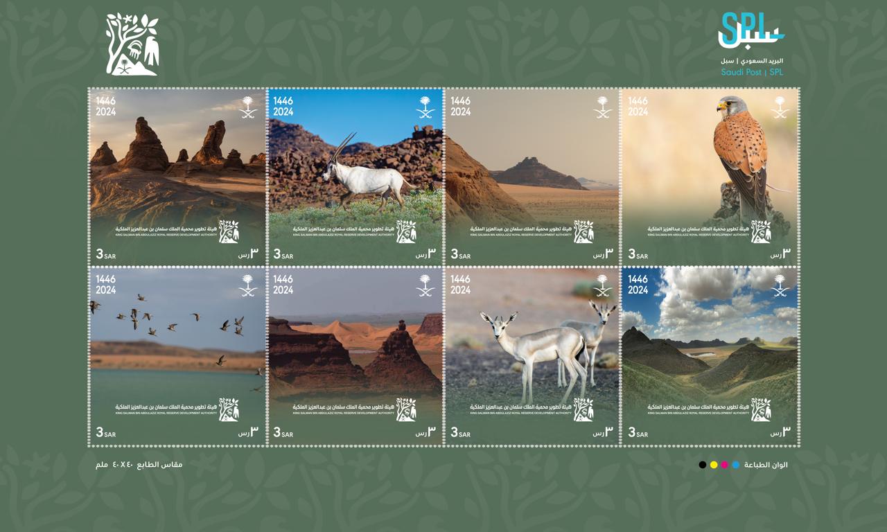 أصدرت مؤسسة البريد السعودي | سبل طابع بفئة ( 3 ) ريال وبطاقة بفئة ( 5 ) ريال عن هيئة تطوير محمية الملك سلمان بن عبدالعزيز الملكية.