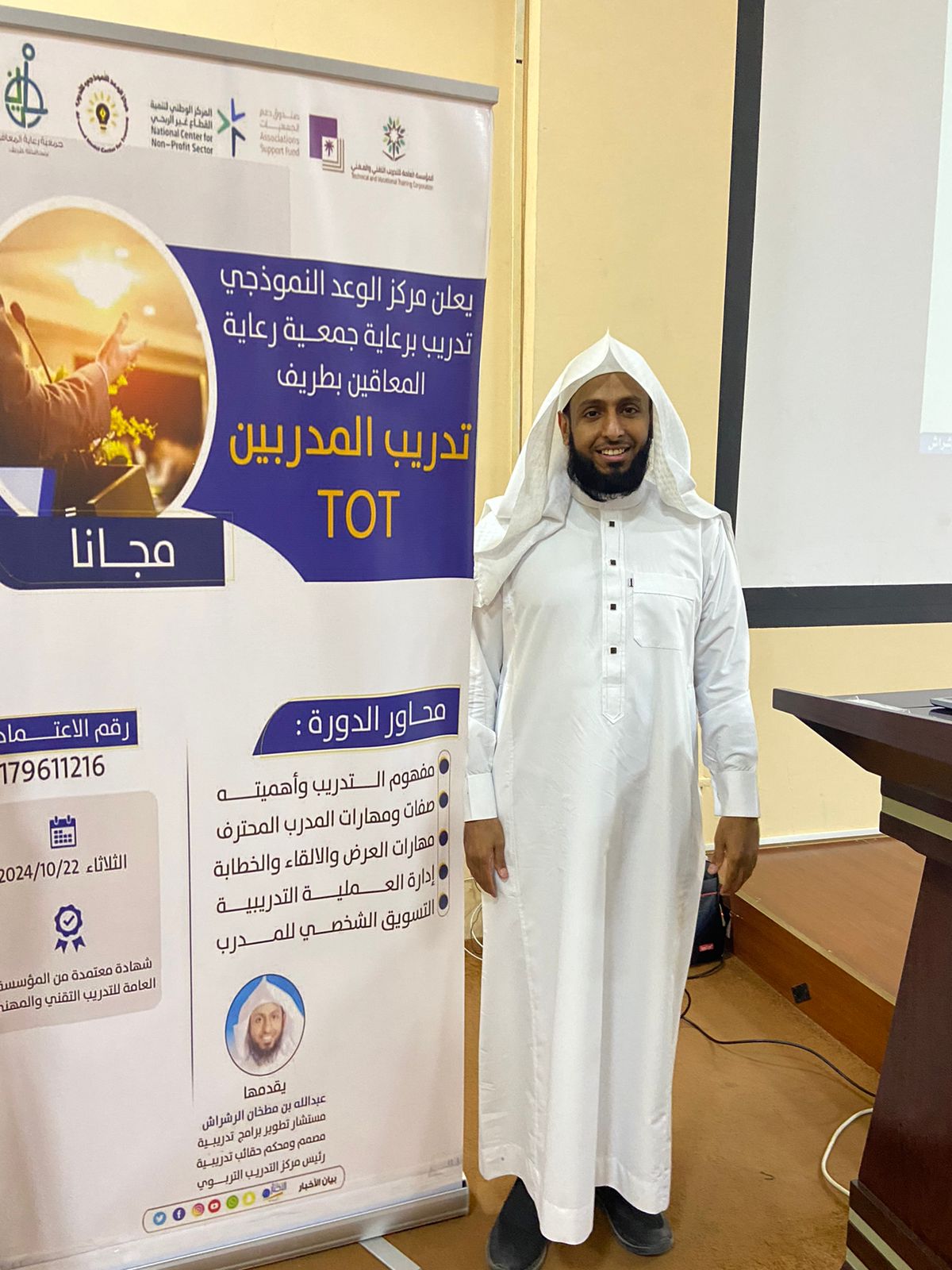 اختتمت اليوم دورة تدريبية بعنوان "تدريب المدربين " TOT من تنظيم مركز الوعد النموذجي للتدريب برعاية جمعية رعاية المعاقين بمحافظة طريف
