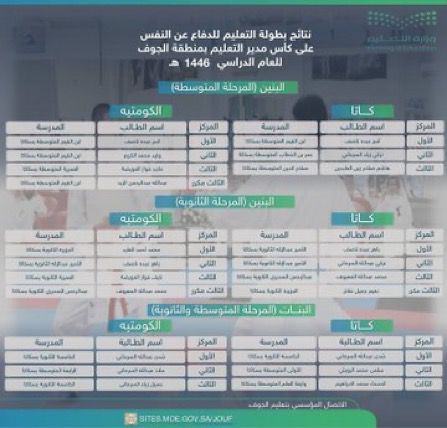 كرم المدير العام لإدارة تعليم الجوف الفائزين والفائزات في بطولة التعليم للدفاع عن النفس.