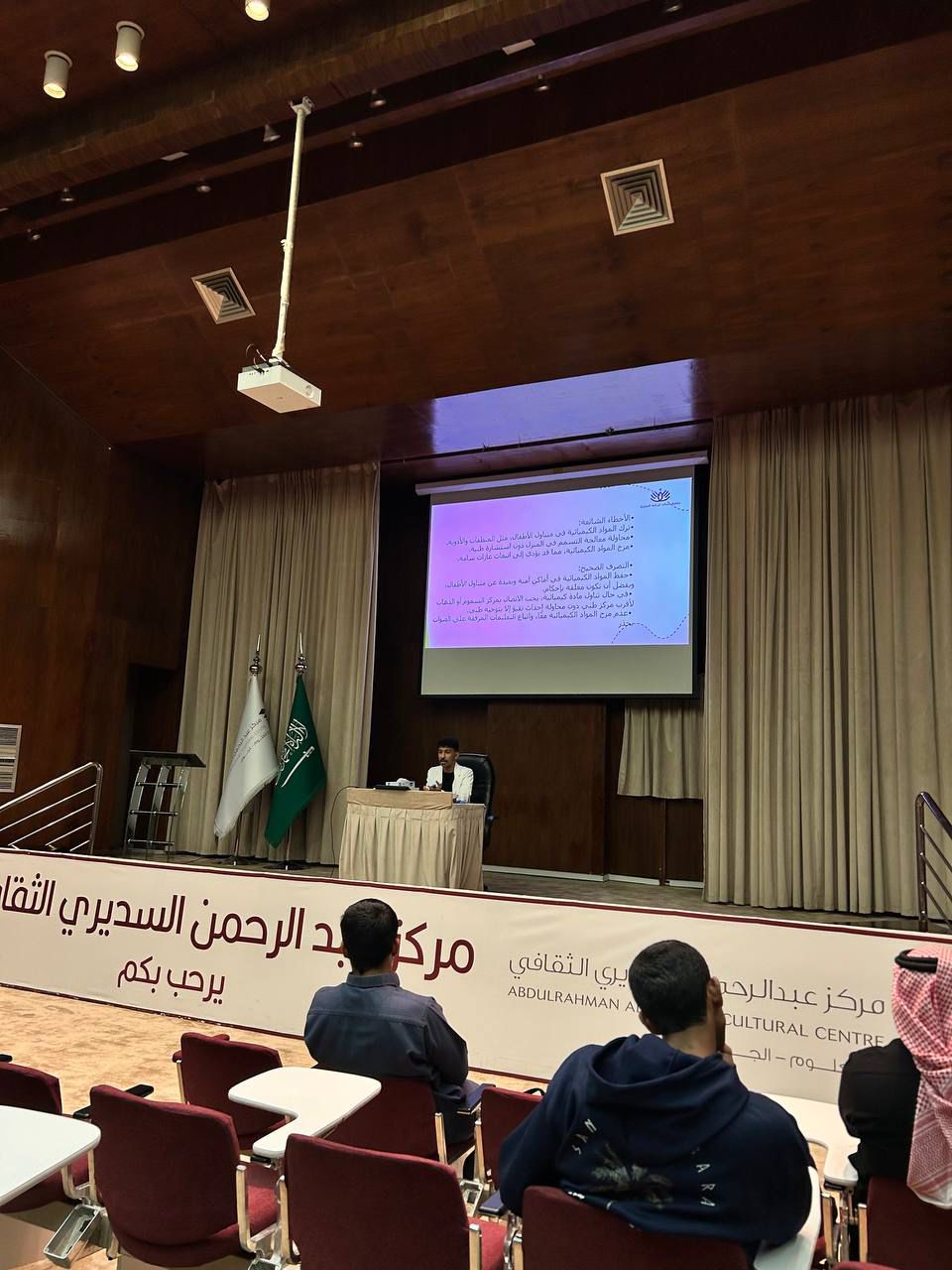 طرق التعامل مع الجروح المنزلية وكيفية الخياطة الجراحية، كان عنوان المحاضرة التي نظمتها جمعية مساندة للرعاية المنزلية على مسرح مركز عبدالرحمن السديري الثقافي -دار العلوم. قدمها طالب السنه الخامسة طب وجراحة عبدالله حسين الرويلي .