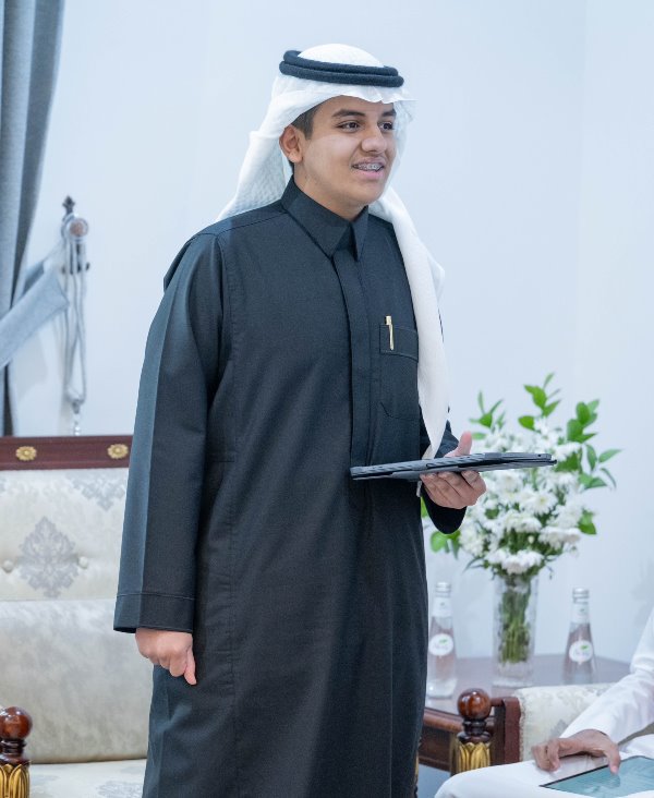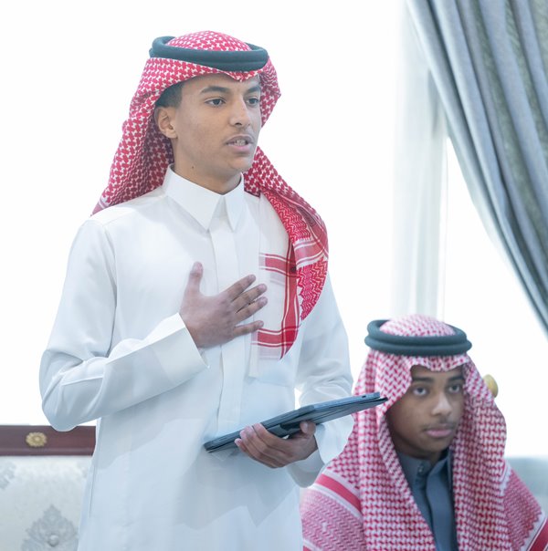 جاء ذلك خلال استقبال سموه في مكتبه بمحافظة طريف، مدير تعليم المنطقة عثمان العثمان، يرافقه مدير مدرسة التميز العلمي محمد الرويلي وعدد من طلاب المدرسة.