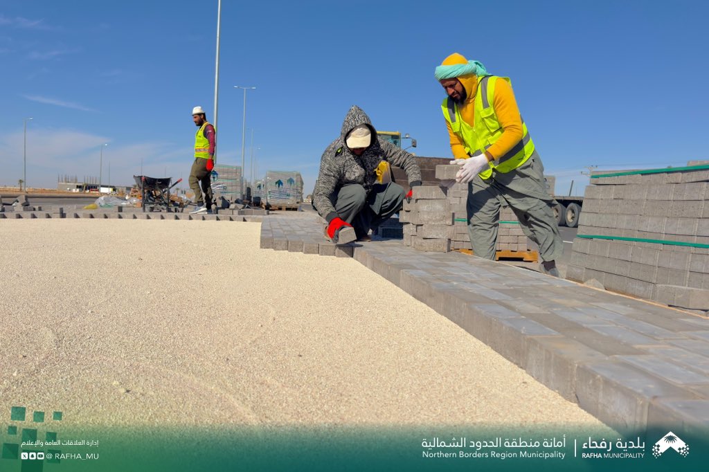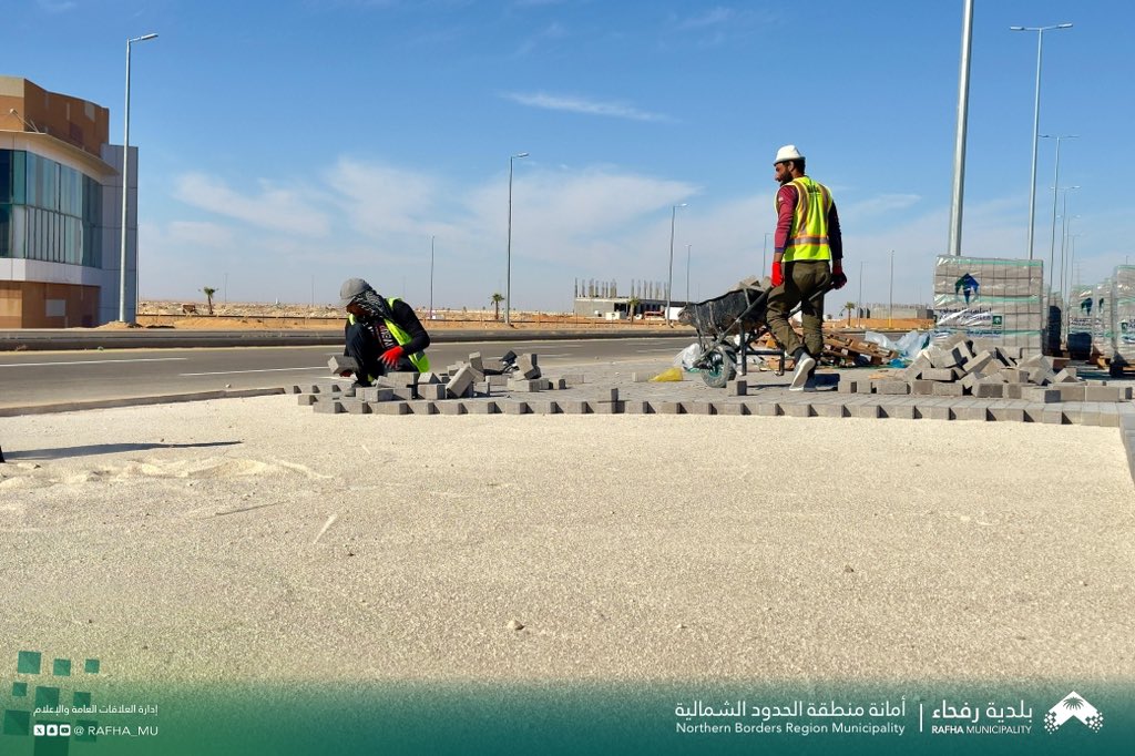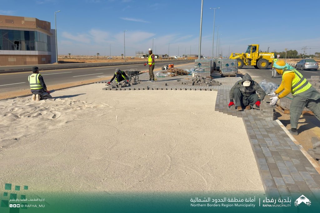 تواصل بلدية محافظة رفحاء أعمال رفع كفاءة الطرق ومعالجة التشوه البصري، من خلال العمل على ارصفة الشوارع