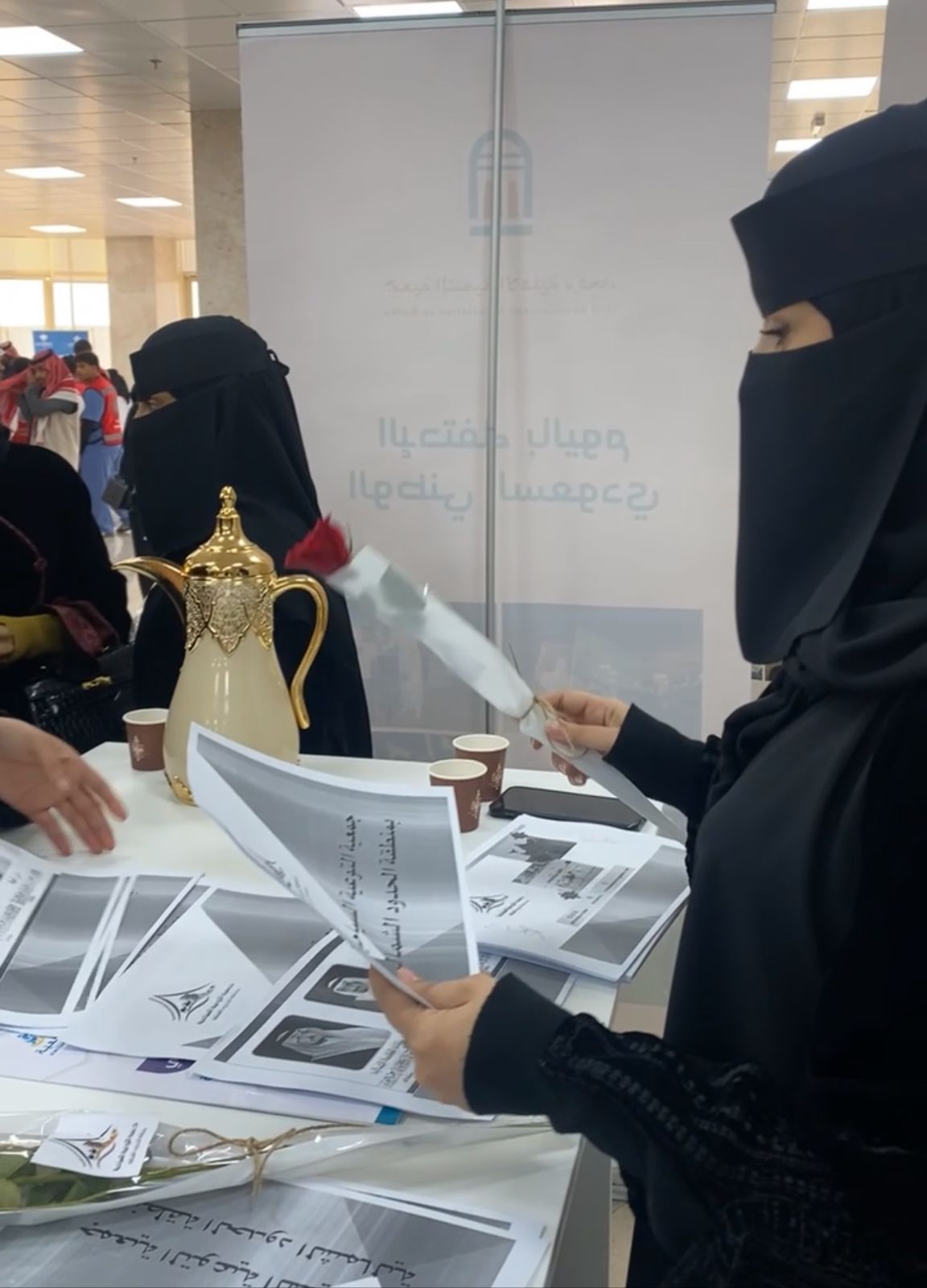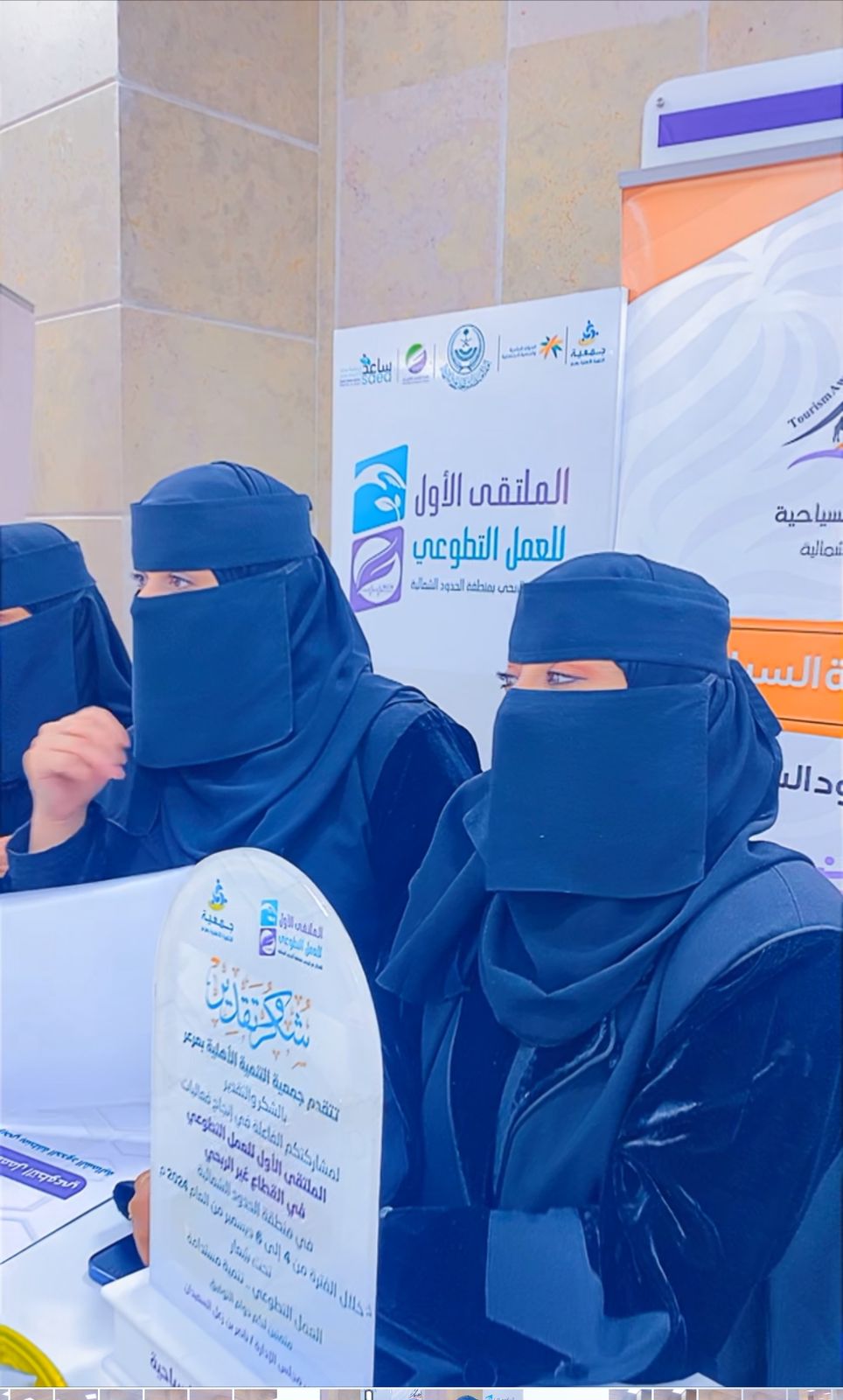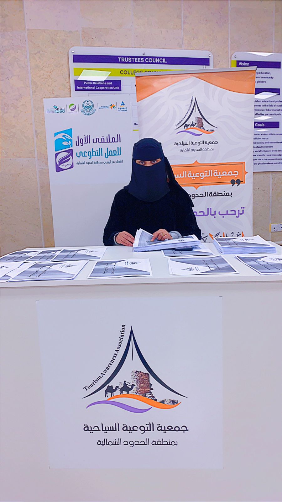 شاركت جمعية التوعية السياحية بمنطقة الحدود الشمالية في فعاليات الملتقى الأول للعمل التطوعي للقطاع غير الربحي والذي أقيم في كلية الشمال للتمريض من خلال ركن للجمعية في هذه الفعالية التي نظمتها جمعية جمعية التنمية الاهلية بمنطقة الحدود الشمالية وقد ترأس وفد الجمعية الدكتور مطيران علي النمس رئيس جمعية التوعية السياحية بالمنطقة كما شارك في هذا الركن نائب الرئيس الاستاذة ريم الخلف نائب الرئيس والأستاذة أشواق عبدالعزيز مدير العلاقات العامة والأستاذة ياسمين الشمري المشرفة على الموقع الإلكتروني والأستاذة منال معافا مدير البرامج والأنشطة بالجمعية والأستاذة نسرين السرحاني المسؤولة عن برامج التواصل الاجتماعي بالجمعية وقد حظي الركن بزيارات متعددة من المسؤولين ومن مختلف شرائح المجتمع وطلاب الكلية وقد احتوى الركن نبذة تعريفية عن الجمعية وأهدافها وعن رؤوية ورسالة الجمعية وعن البرامج والمبادرات التي سوف تقدمها في المستقبل .