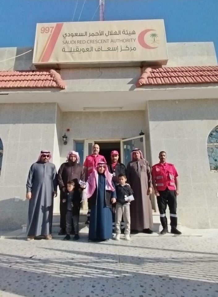 استقبلت هيئة الهلال الأحمر السعودي بمنطقة الحدود الشمالية في مكتب الهيئة بمحافظة العويقيلة بمناسبة اليوم العالمي للإعاقة طلاب من مدرسة عبدالله بن رواحة من ذوي الاحتياجات الخاصة بالمحافظة حيث تم تعريفهم بمهام الفرق الإسعافية وكيفية استقبال البلاغ من غرفة العمليات 997 وشملت جولتهم سيارة الإسعاف وقدم طلاب المدرسة شكرهم وإعتزازهم بهذه الزيارة .