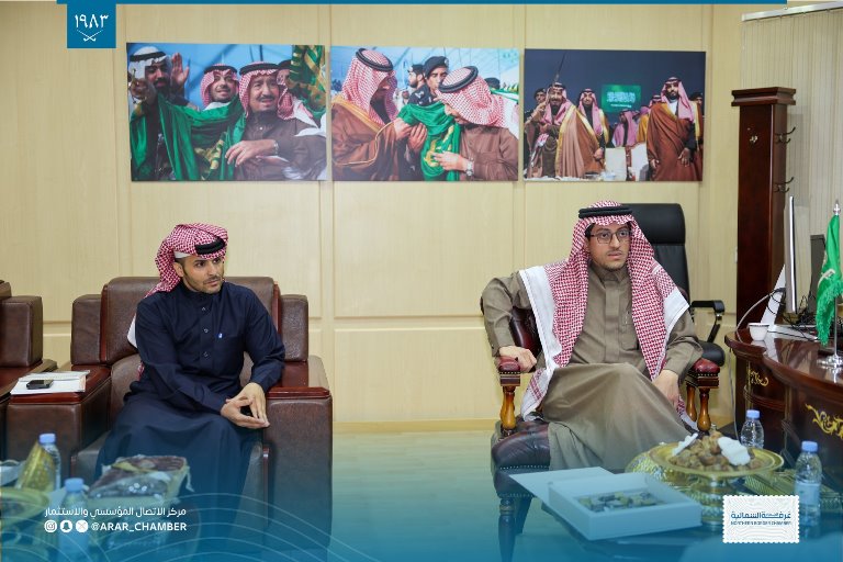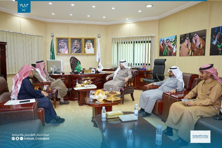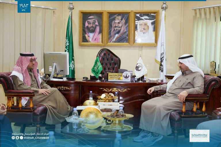 استقبل سعادة رئيس مجلس إدارة غرفة الحدود الشمالية أ.أحمد بن صالح السويلم بحضور سعادة الامين العام أ.نايف الدغماني سعادة رئيس مجلس جمعية دار للإسكان بعرعر محمد سالم ابو الروس يرافقه المهندس مجول سريان الدهمشي مستشار الجمعية وذلك لبحث سبل التعاون في البرامج التي تقدمها الجمعية للمستفيدين.