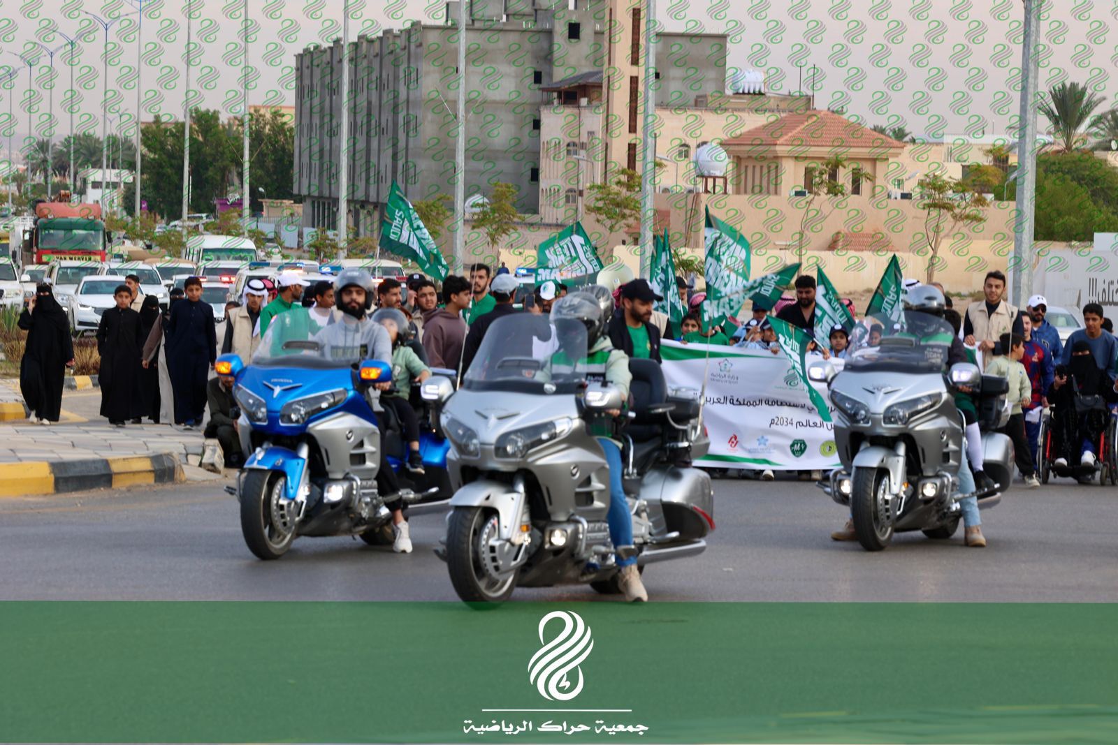 وشارك في المسيرة ما يزيد عن 200 رياضي ورياضية, إضافة إلى الفرق الطلابية ومجموعات الدراجات النارية وأندية العروبة والقلعة والانطلاق والجندل ونادي الجوف لذوي الإعاقة ومركز التدريب الإقليمي بالجوف.