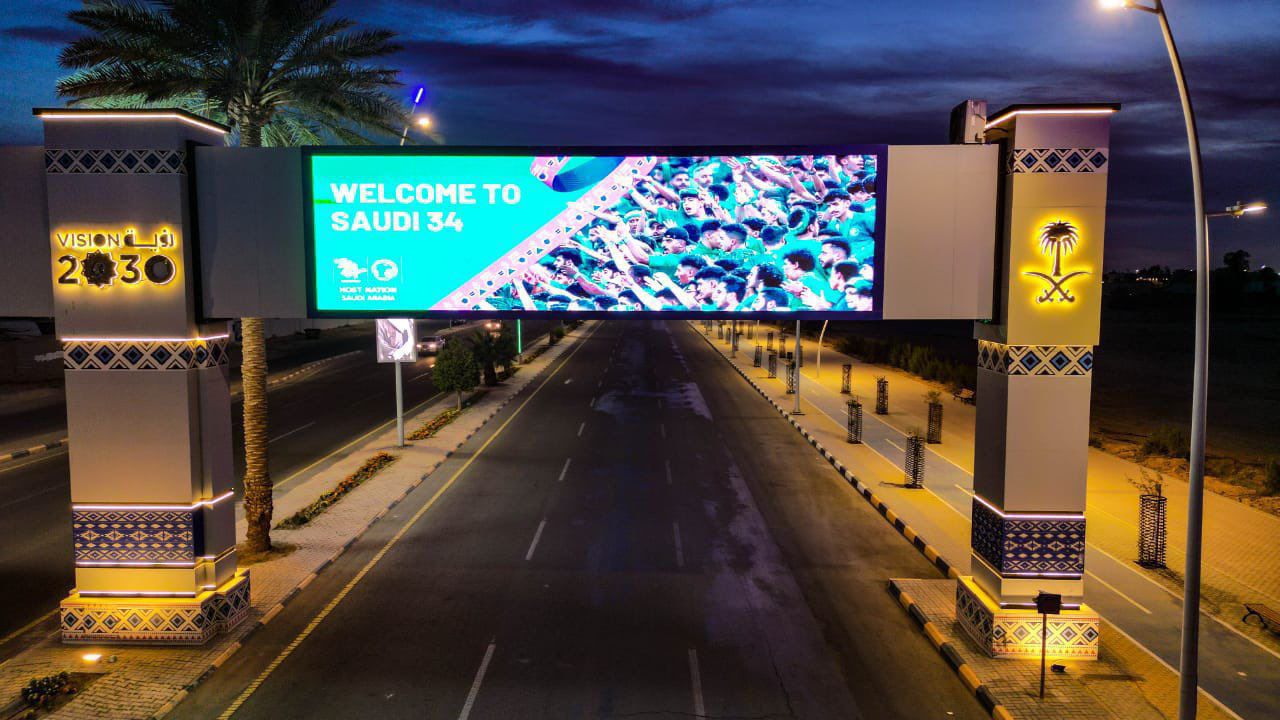 توشحت شوارع وميادين منطقة الجوف بحلة خضراء من رايات الوطن واللوحات والإضاءة الخضراء؛ احتفالًا بالإعلان الرسمي لفوز المملكة باستضافة كأس العالم 2034.