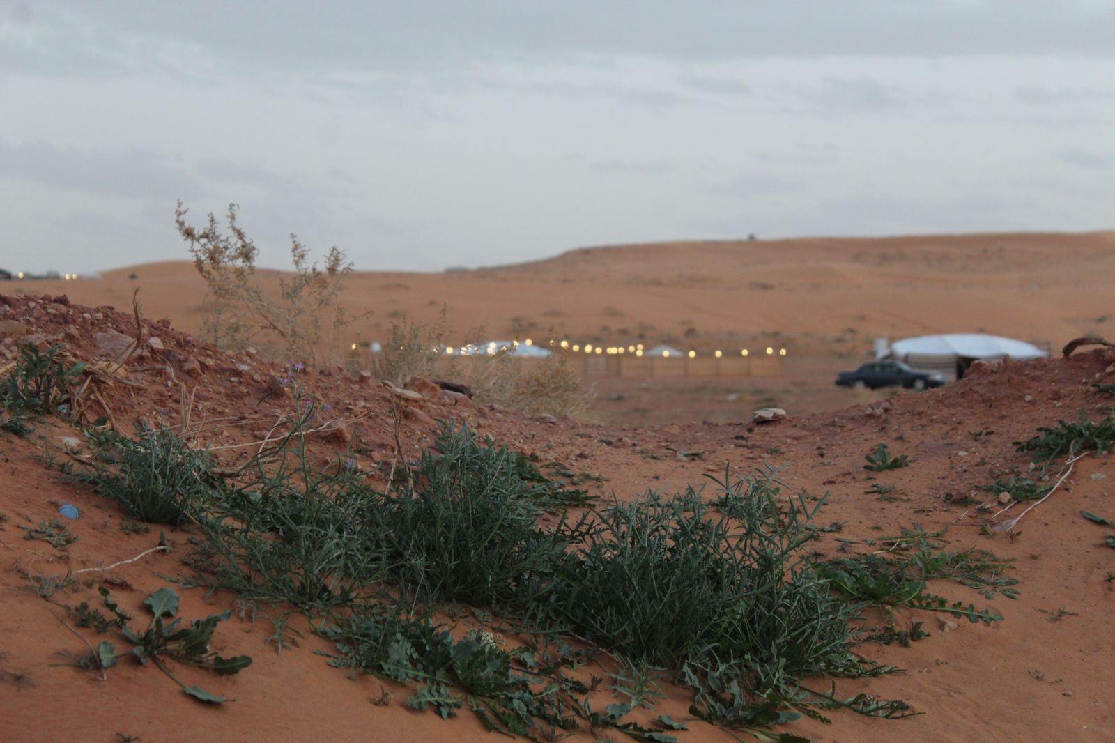 بين كثبان الرمال الذهبية، اهتزت التربة وأزهرت زهور برية رائعة بألوان زاهية تغمر الصحراء. في هذا المشهد الخلاب، انتشرت المخيمات في صحراء الجوف، حيث تستقبل الزوار من كل مكان.