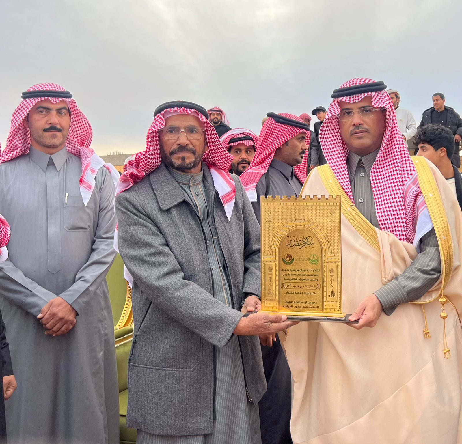 كما قدم مدير الميدان درع تكريم لسعادة محافظ طبرجل ودرع تكريم لرجل الأعمال عبدالهادي مونس البركات الشراري على دعمه الغير مستغرب .