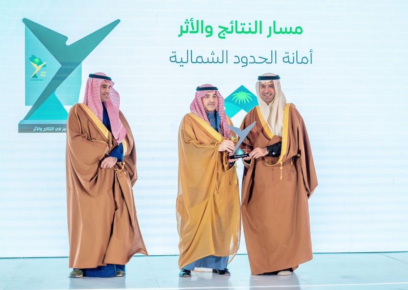 كرم معالي وزير البلديات والإسكان الأستاذ ماجد الحقيل سعادة أمين منطقة الحدود الشمالية في الحفل الختامي لوزارة البلديات والإسكان لعام 2024م، بمناسبة فوز أمانة المنطقة بمسار التميز في النتائج والأثر .