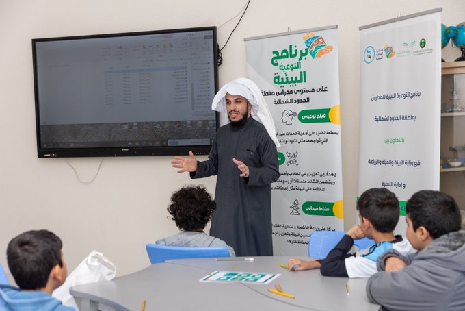 وأقيم البرنامج بالتعاون بين فرع وزارة البيئة والإدارة العامة للتعليم بمنطقة الحدود الشمالية، بهدف حماية البيئة، والحد من التلوث، ومكافحة التصحر والإسهام في تحسين جودة الحياة، من خلال عرض الأفلام التوعوية وأنشطة الفصول الدراسية والأنشطة الميدانية وزراعة الأشجار وتنظيف الفناء الداخلي للمدارس.
