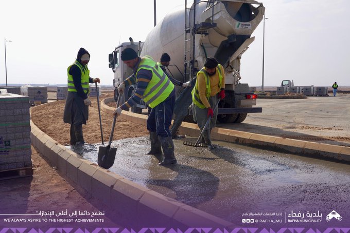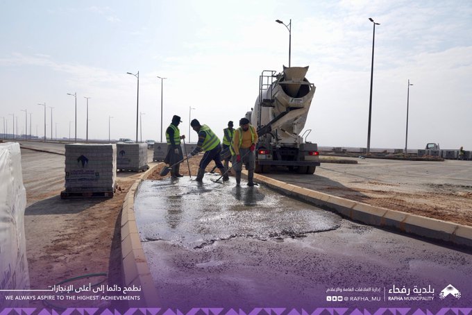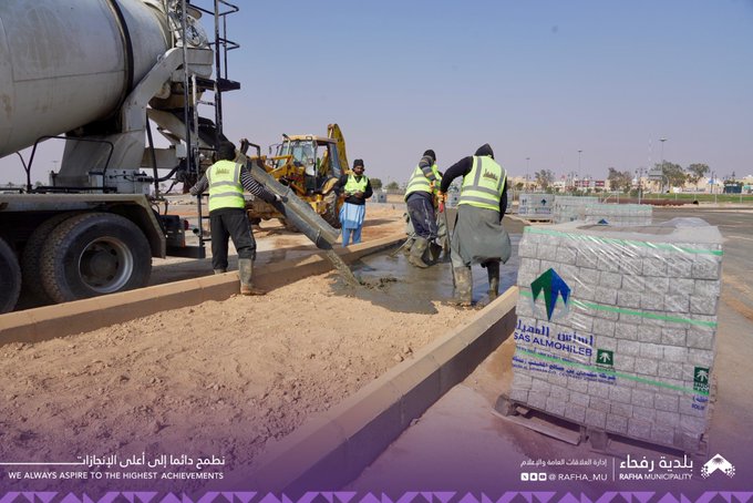 تواصل بلدية رفحاء أعمال تحسين المشهد الحضري وتستمر في تأهيل الجزيرة الوسطية في الطرق الرئيسية .