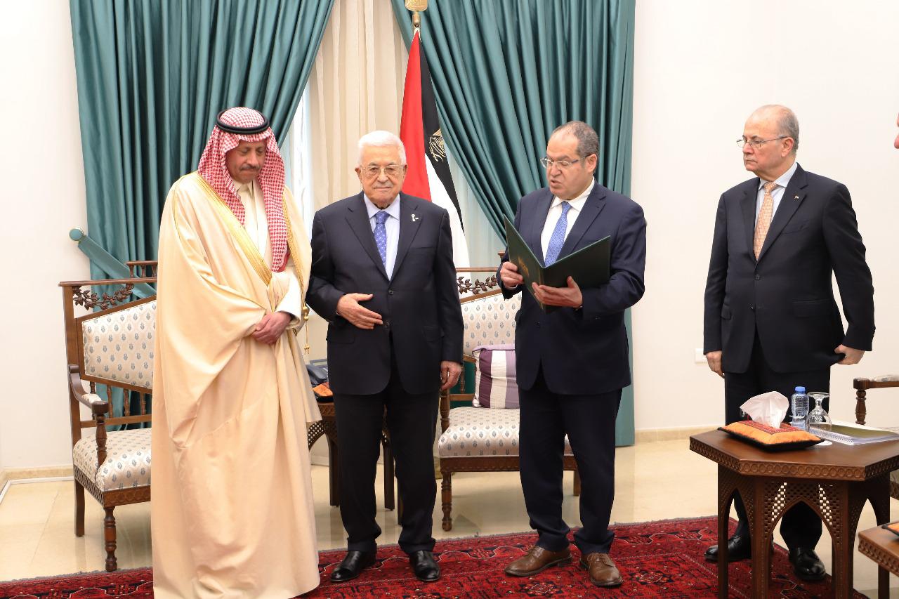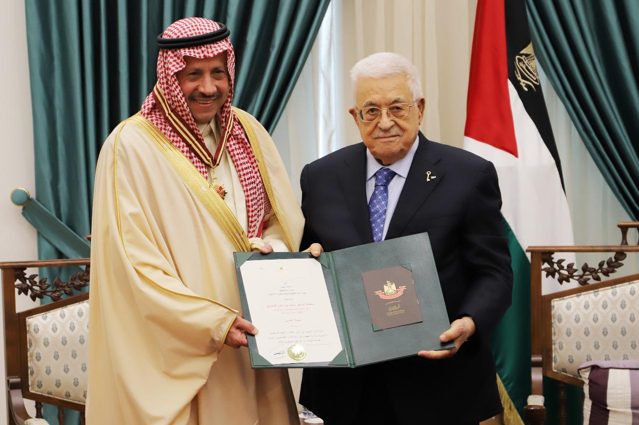 قلد رئيس دولة فلسطين محمود عباس، سفير المملكة العربية السعودية، نايف بن بندر السديري،وسام نجمة القدس.