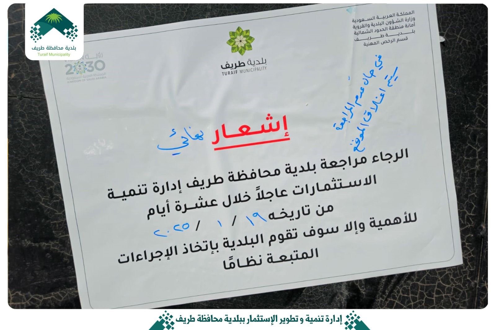 كثفت بلدية محافظة طريف ممثلة بإدارة تطوير الاستثمار جولاتها الميدانية علي المواقع الاستثمارية لمتابعة اشتراطات العقود وانذار المواقع لديها مستحقات متأخرة بالسداد وتهيب بالمستثمرين المتعثرين سرعة السداد قبل ان يتم تطبيق الانظمة المتبعة .