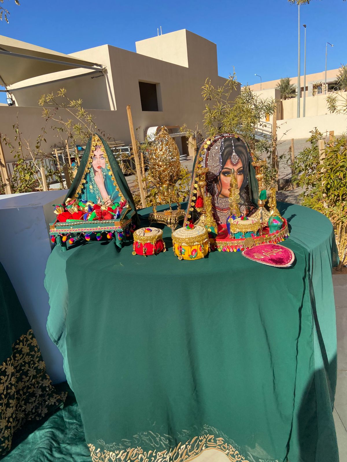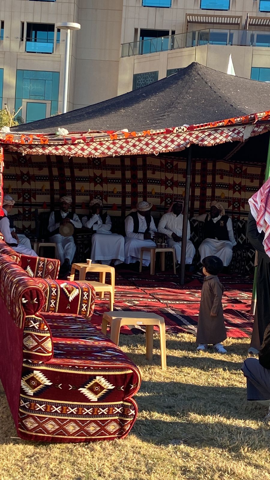 وركن شعبي يجسد الموروث السعودي في بيت الشعر والصقارين .