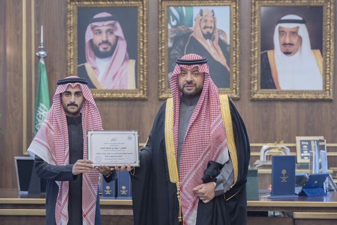وهنأ سموه الطالب الجارد على هذا الإنجاز العلمي المتميز، الذي يعكس تميز أبناء المنطقة في جميع المحافل العلمية المحلية والدولية، متمنيًا للطالب المزيد من التوفيق والنجاح في مسيرته التعليمية، مشيرًا إلى أن الكفاءات البشرية تُعد الثروة الحقيقية لتنمية المنطقة وتحقيق تطلعاتها التنموية.