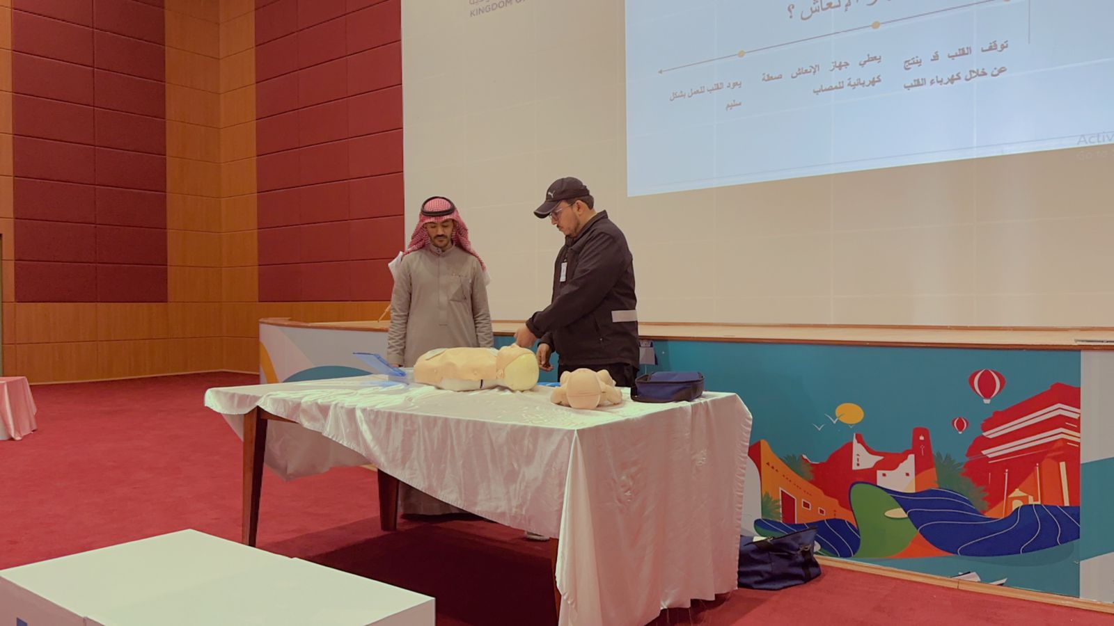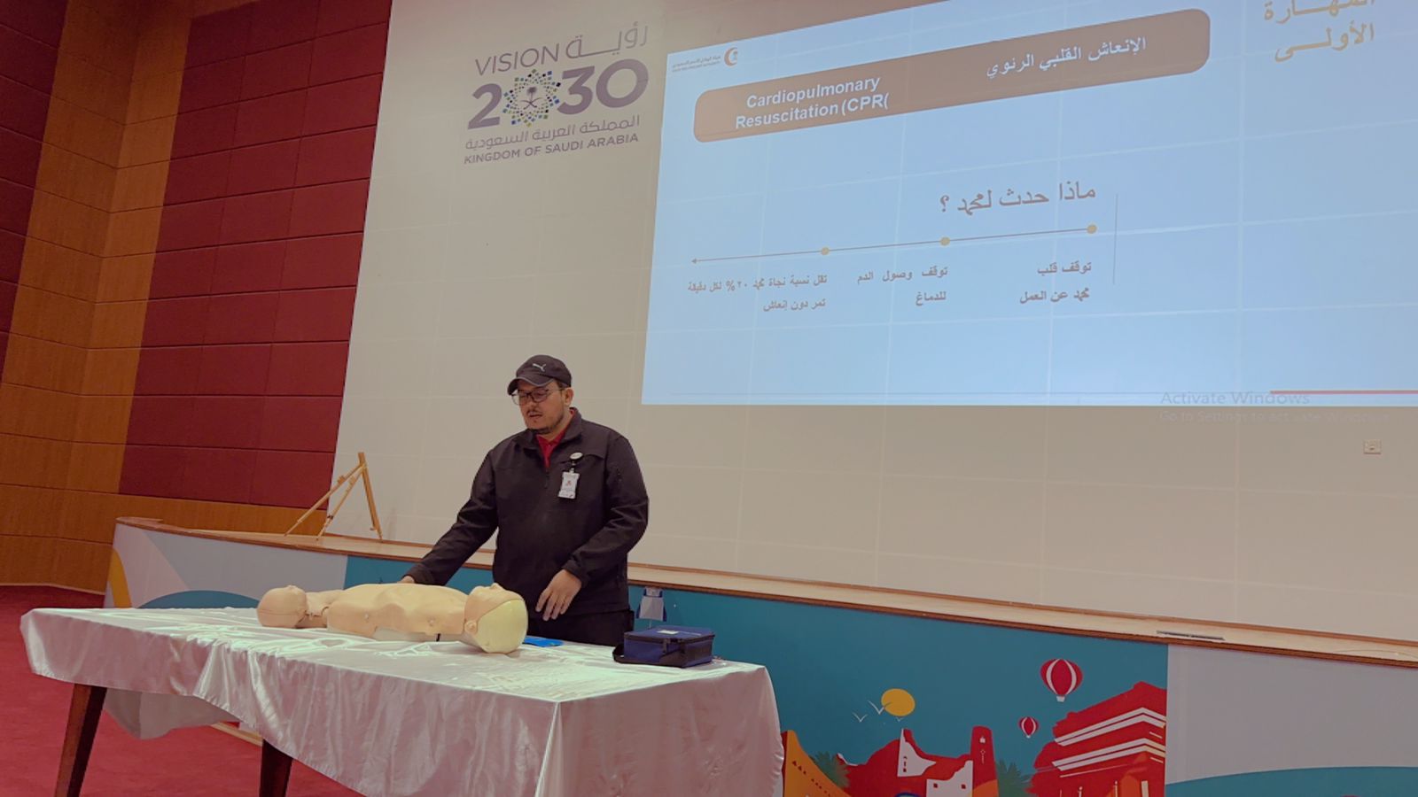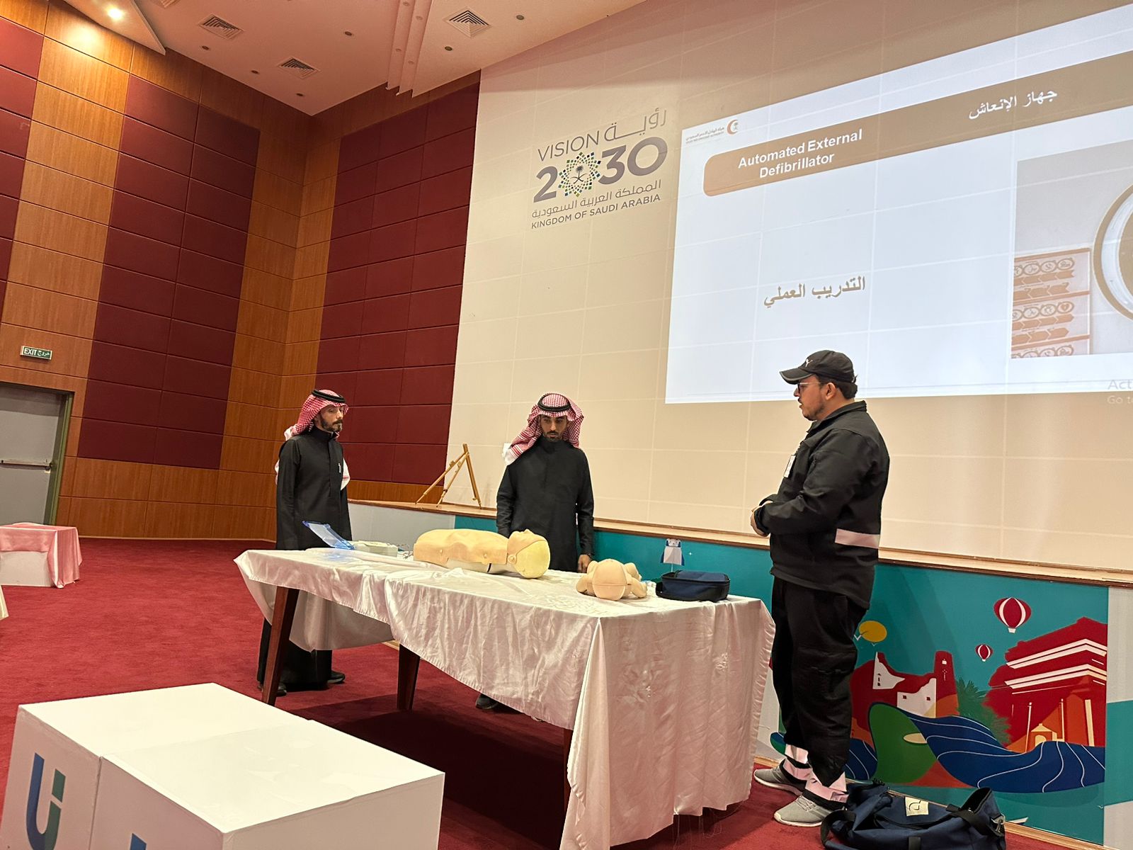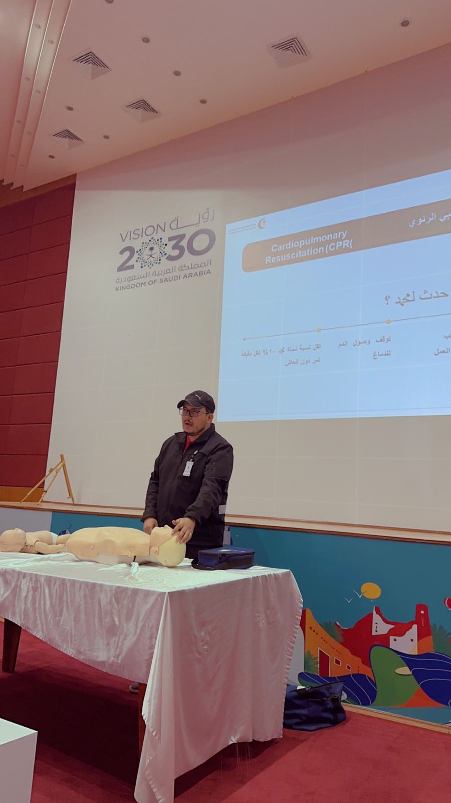 وذلك بالتعاون مع فرع هيئة الهلال الأحمر السعودي برفحاء نفذها المدرب المسعف/عثمان الفديد في قاعة التعليم الطبي المستمر في مستشفى رفحاء العام