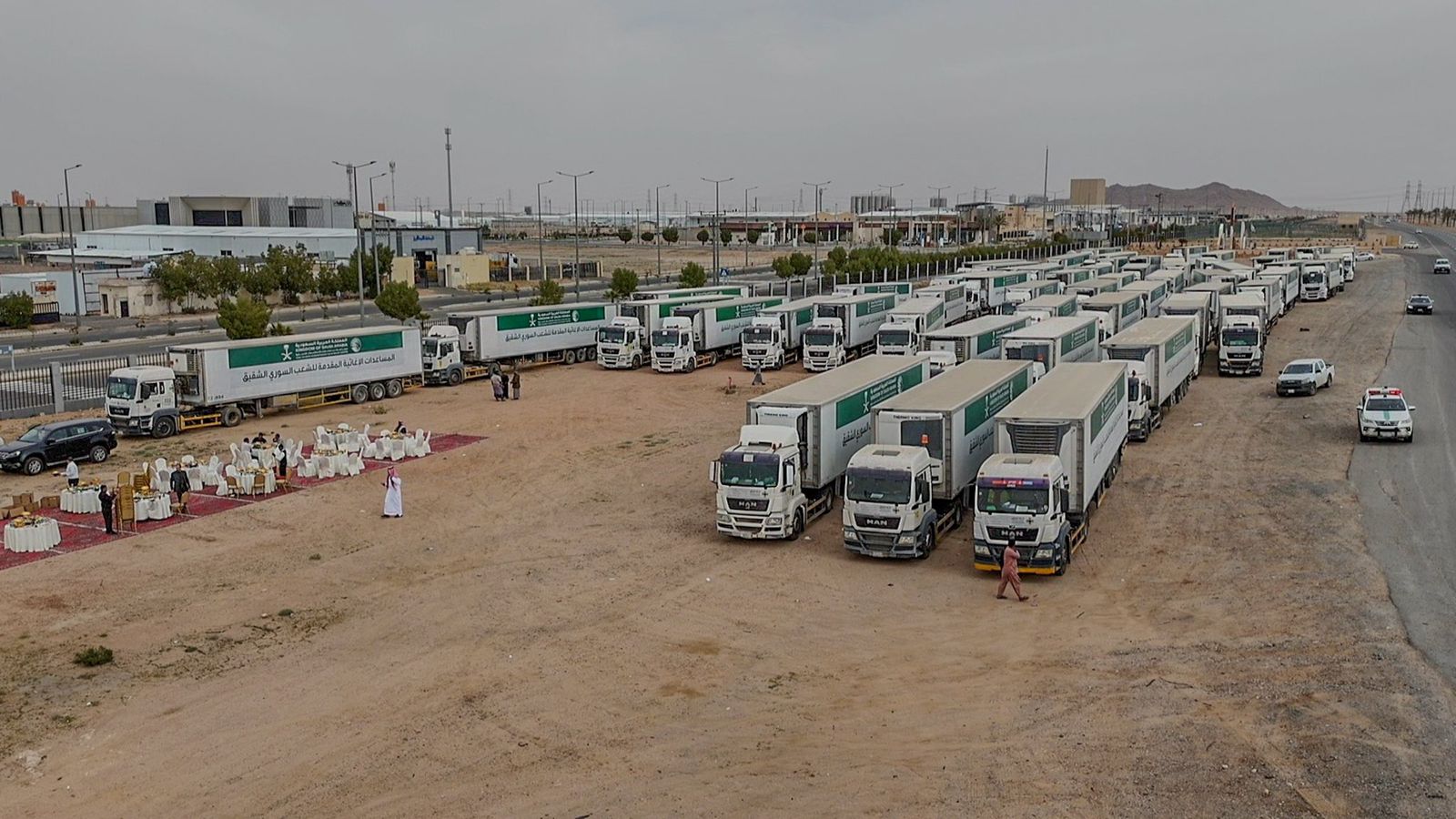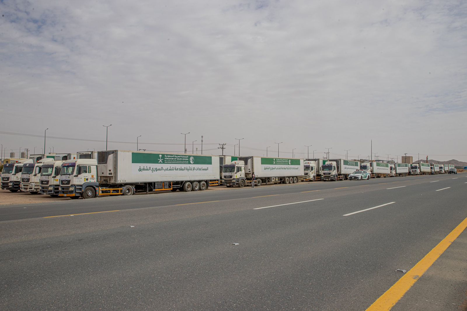 عبرت منطقة حائل اليوم, 60 شاحنة إغاثية ضمن الجسر البري الإغاثي السعودي مقدمة للشعب السوري الشقيق، الذي يسيره مركز الملك سلمان للإغاثة والأعمال الإنسانية، والمتوجهة إلى الجمهورية العربية السورية، تحمل على متنها مواد غذائية وإيوائية للإسهام في تخفيف آثار الأوضاع الصعبة التي يمر بها الشعب السوري الشقيق حاليًا.