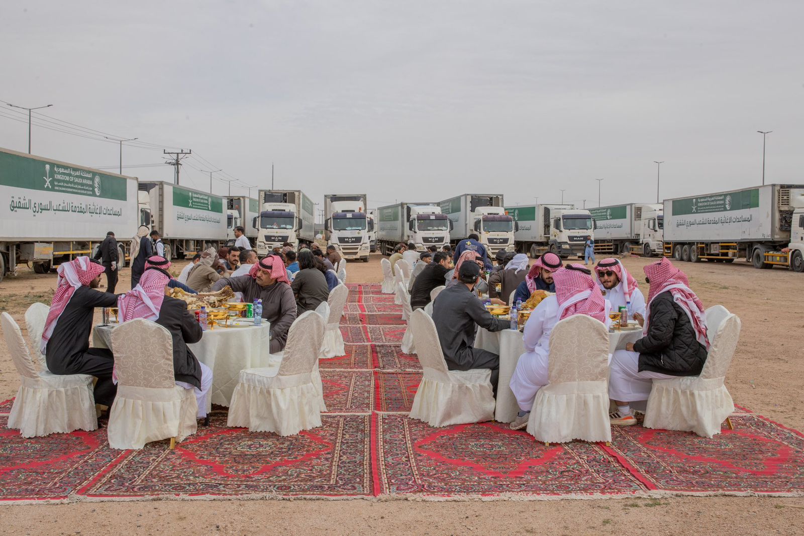 وتتكون الحملة من 60 شاحنة تشتمل على المواد الإغاثية والإيوائية والغذائية في طريقها إلى الجمهورية العربية السورية الشقيقة.