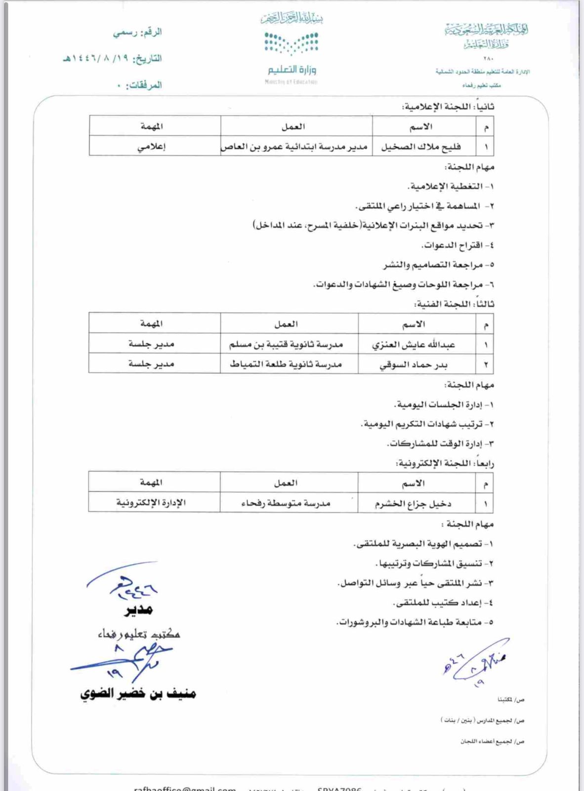 رأس مدير مكتب تعليم رفحاء، الأستاذ منيف خضير الضوي، الاجتماع الثاني للجنة التحضيرية لملتقى “تحسين 2”، الذي يركز على التعلم العميق (Deep Learning)، وذلك بحضور المدير التنفيذي الأستاذ فهد الفديد ورؤساء اللجان المشاركة.