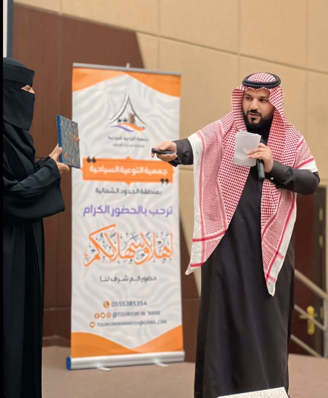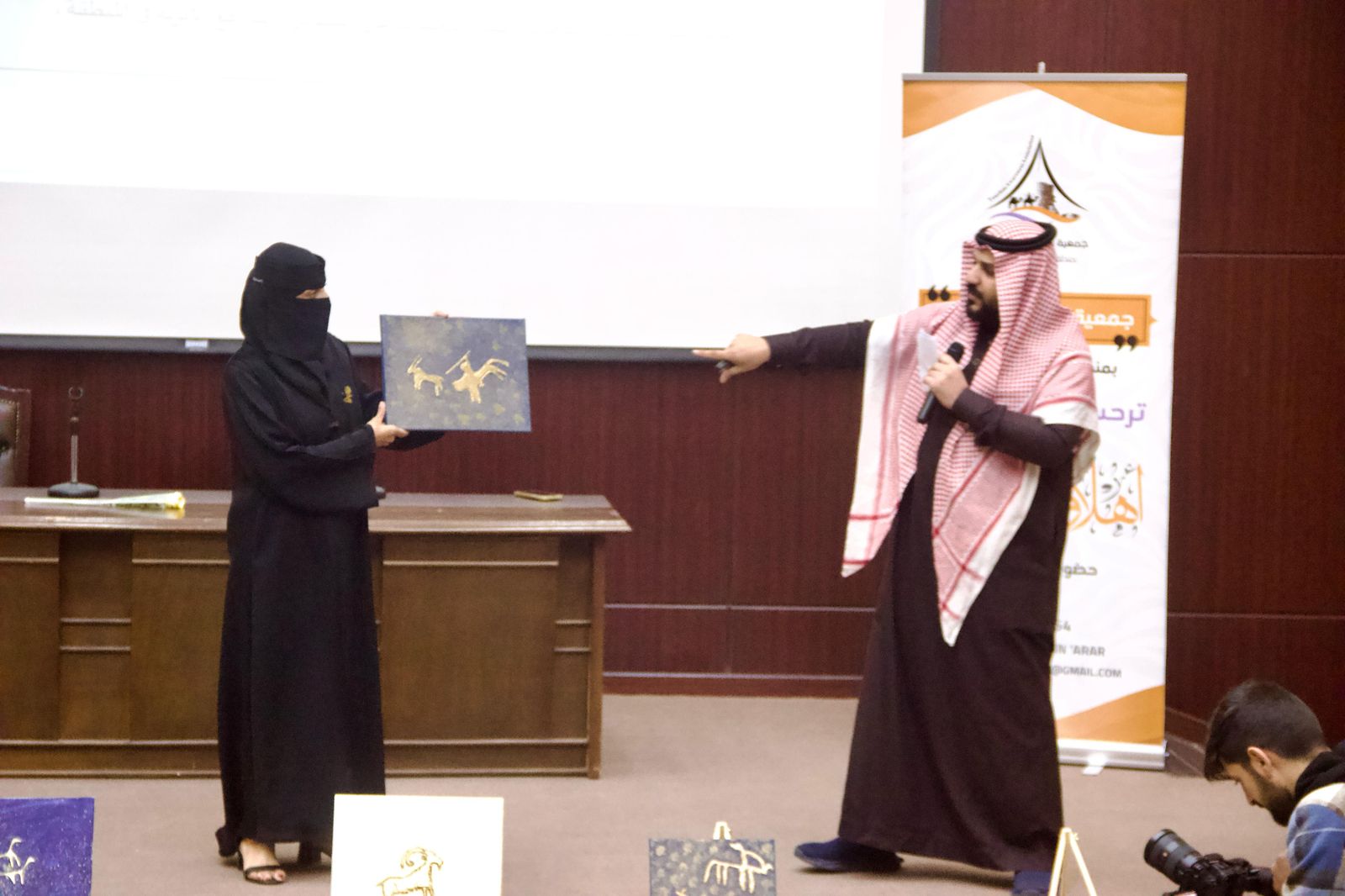 نظّمت جمعية التوعية السياحية بالحدود الشمالية محاضرة بعنوان "النقوش العربية القديمة في منطقة الحدود الشمالية"، حيث استهلّ رئيس الجمعية، الدكتور مطيران النمس، المحاضرة بسرد قصة قصيرة تاريخية.